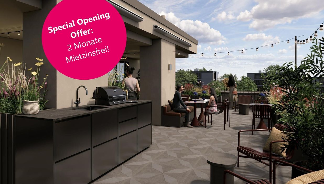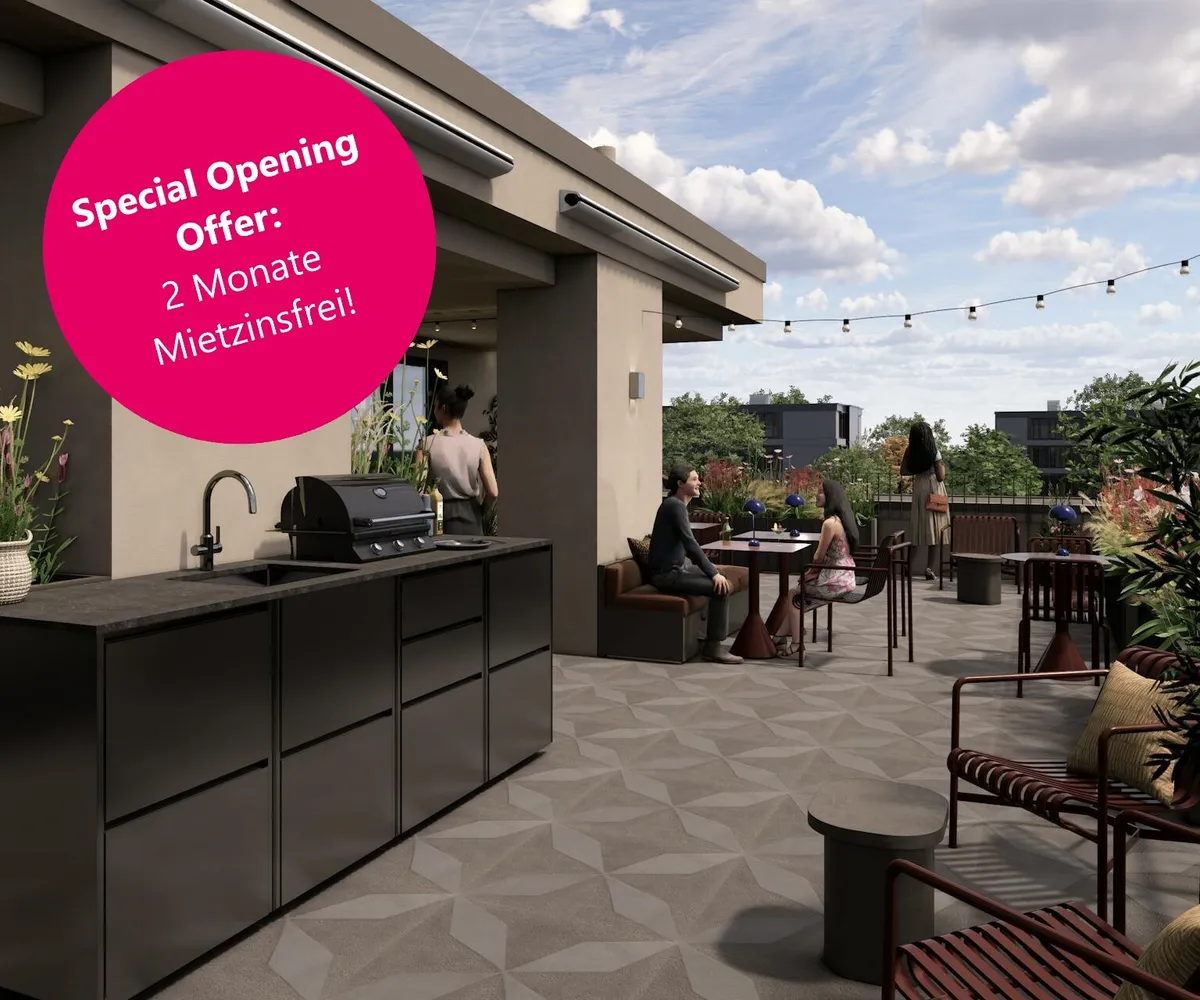 Neben Ihrem privaten Wohnbereich profitieren Sie von großzügigen, hochwertig gestalteten Gemeinschaftsflächen, die weit über das Übliche hinausgehen: Ob konzentriertes Arbeiten im Co-Working Space, entspannte Stunden in der stilvollen Bewohner Lounge oder aktive Pausen im hauseigenen Fitness- und Yogastudio – hier finden Sie genau den Ort, den Sie gerade brauchen. Für gesellige Momente stehen Ihnen ein exklusiver Private-Dining-Raum, ein Gaming Room und ein einladender Kinosaal zur Verfügung. Wer kreativ tätig werden möchte, findet im professionell ausgestatteten Podcast Raum den idealen Rahmen. Ein besonderes Highlight ist die grüne Dachterrasse mit Gemeinschaftsgarten – ein Rückzugsort über den Dächern der Stadt, der zum Entspannen, Gärtnern und Genießen einlädt.