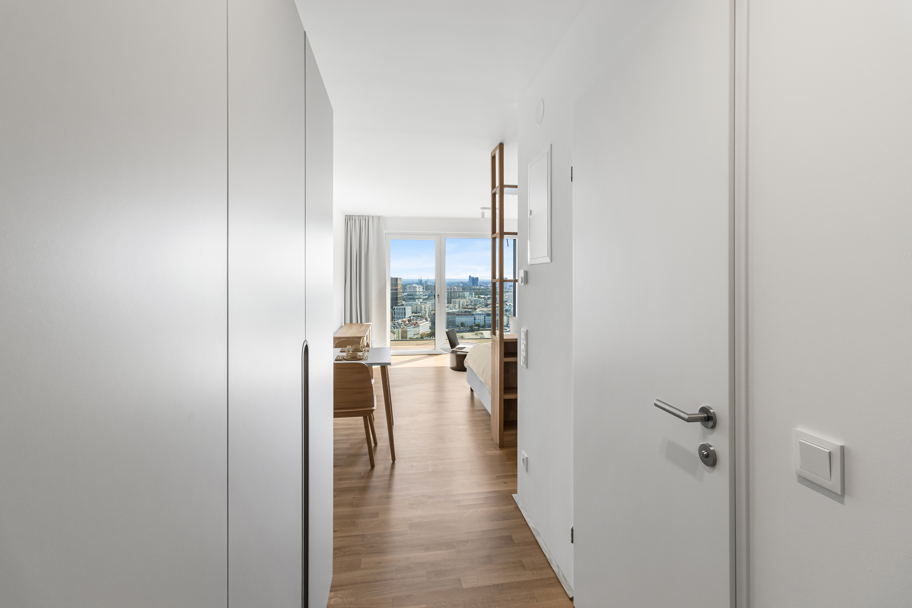 Neben Ihrem privaten Wohnbereich profitieren Sie von großzügigen, hochwertig gestalteten Gemeinschaftsflächen, die weit über das Übliche hinausgehen: Ob konzentriertes Arbeiten im Co-Working Space, entspannte Stunden in der stilvollen Bewohner Lounge oder aktive Pausen im hauseigenen Fitness- und Yogastudio – hier finden Sie genau den Ort, den Sie gerade brauchen. Für gesellige Momente stehen Ihnen ein exklusiver Private-Dining-Raum, ein Gaming Room und ein einladender Kinosaal zur Verfügung. Wer kreativ tätig werden möchte, findet im professionell ausgestatteten Podcast Raum den idealen Rahmen. Ein besonderes Highlight ist die grüne Dachterrasse mit Gemeinschaftsgarten – ein Rückzugsort über den Dächern der Stadt, der zum Entspannen, Gärtnern und Genießen einlädt.