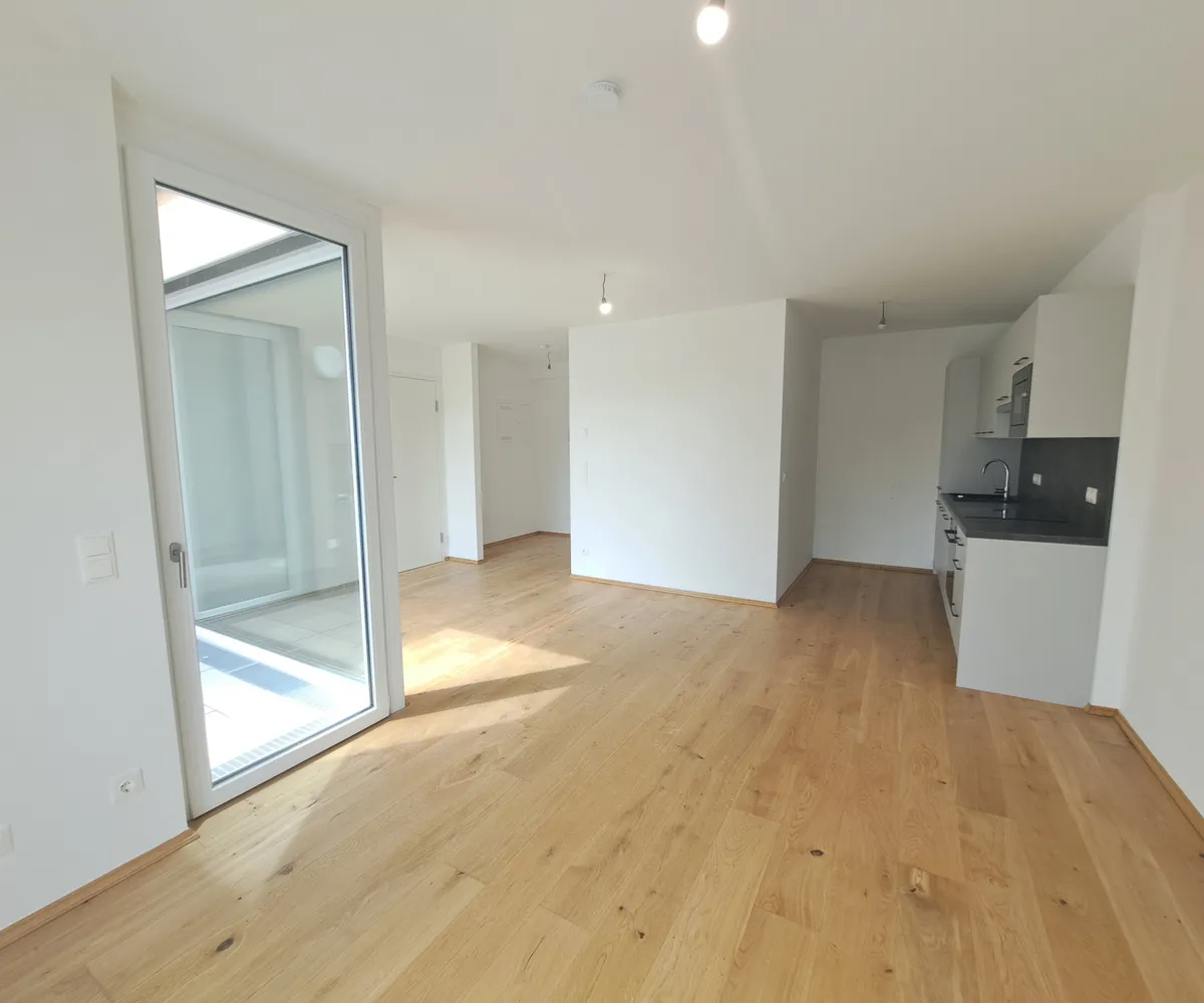 Hier stehen 83 attraktive, bereits bezugsfertige Wohnungen, umgeben von großzügigen Freiflächen, zum Verkauf. Ob mit einem gemütlichen Eigengarten, Balkon oder Terrasse – diese neue Wohnhausanlage bietet für jeden Wunsch die perfekte Außenfläche.
