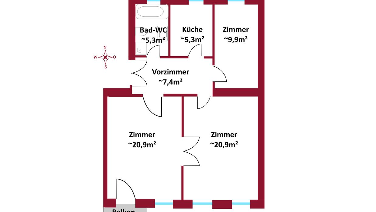 Die Wohnung wurde umfassend und hochwertig generalsaniert und präsentiert sich in bestem Zustand. Sie besteht aus einem großzügigen Wohnzimmer mit Zugang zu einem gemütlichen Balkon, einer separaten Küche mit ausreichend Platz für einen Essbereich, einem großzügigen Badezimmer mit einer Badewanne und einer Dusche, einem ruhigen und hofseitig gelegenen Schlafzimmer sowie einem weiteren vielseitig nutzbaren Zimmer. Alle Räume sind zentral begehbar und bieten eine durchdachte und funktionale Raumaufteilung und somit einen maximalen Wohnkomfort.