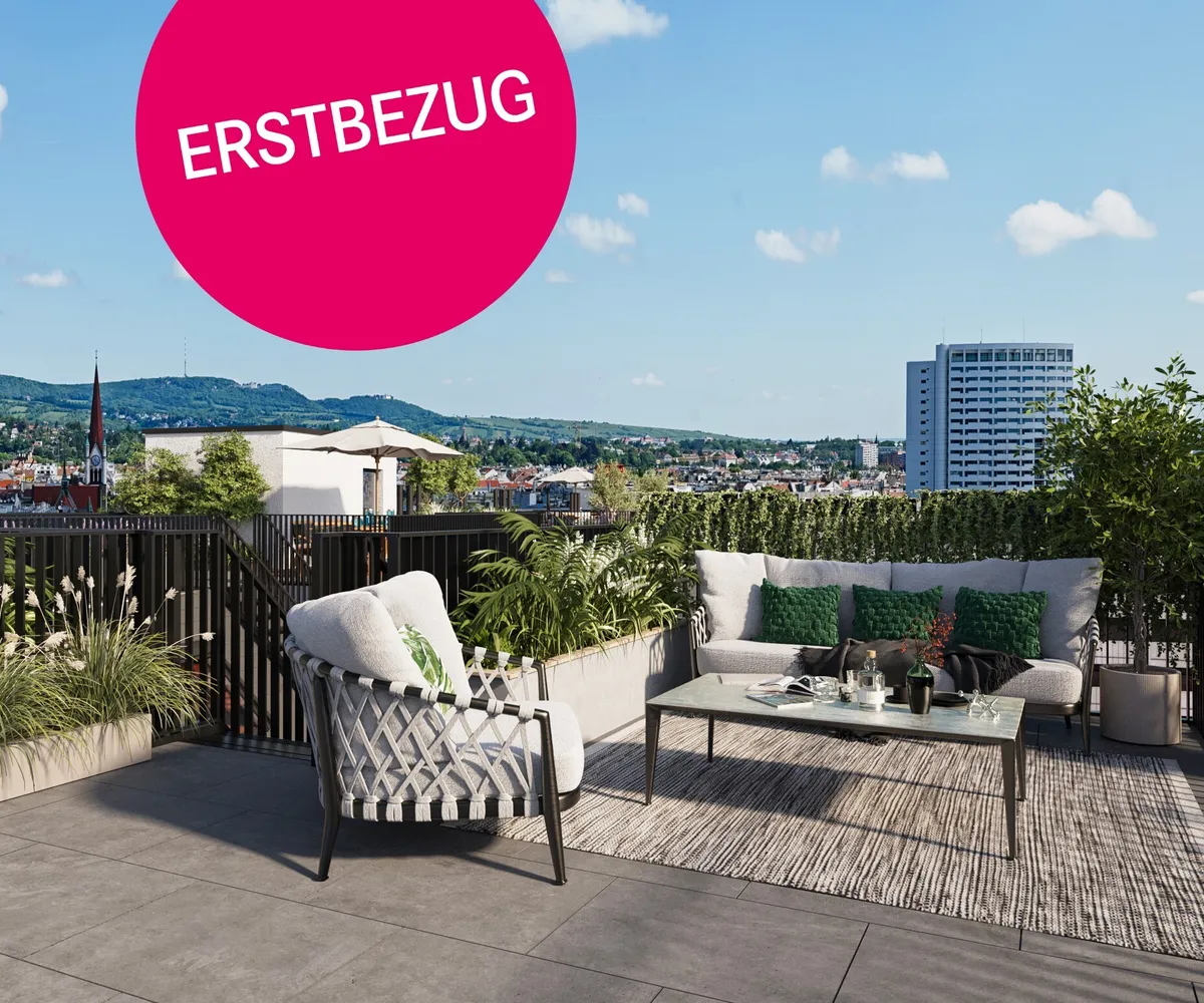 Großzügige private Freiflächen wie Eigengärten, Balkone, Terrassen, Loggien sowie beeindruckende Dachterrassen mit Panoramablick schaffen ein einzigartiges Wohngefühl.