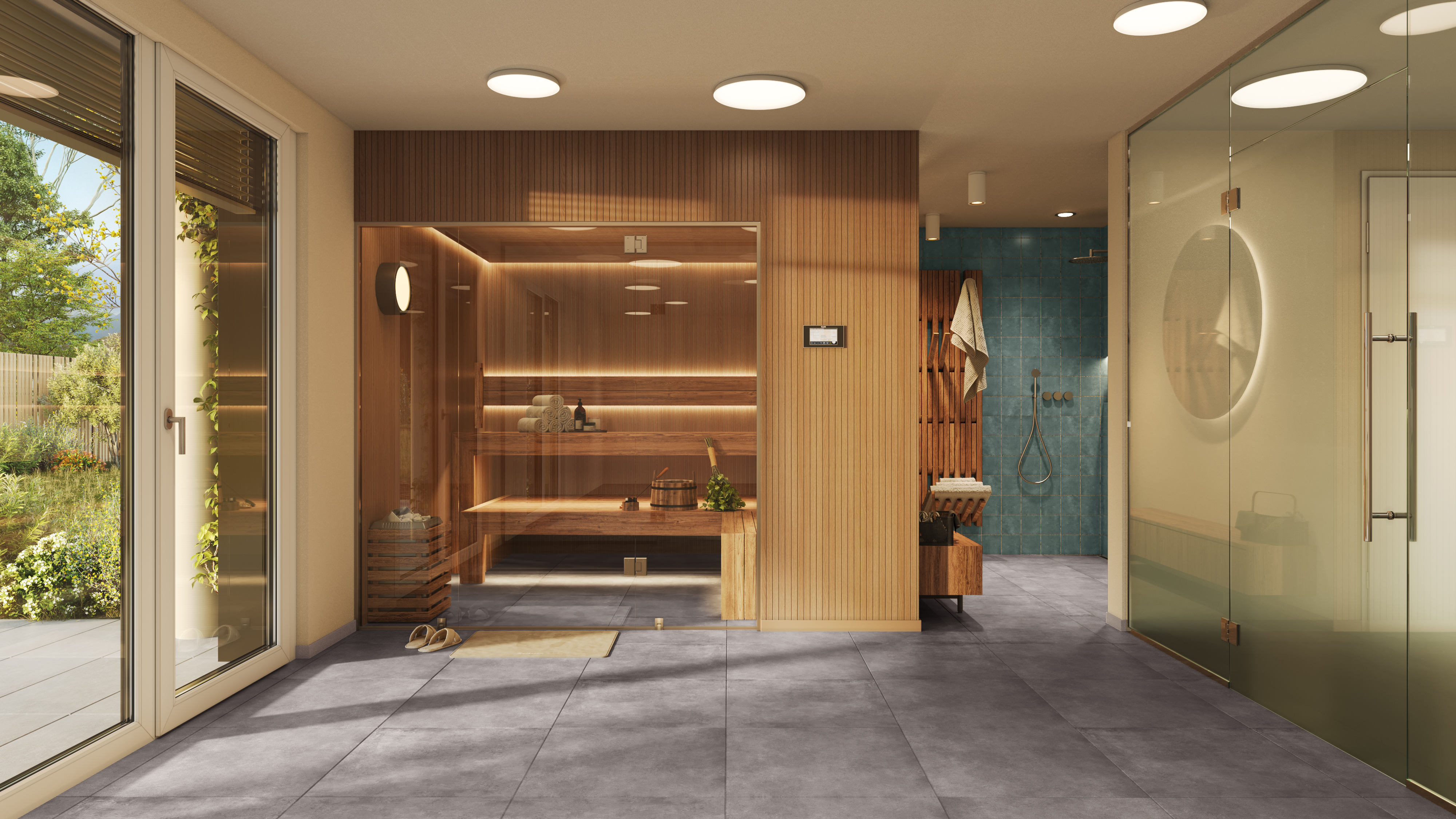 Die natürliche Materialität schafft ein gesundes Raumklima, kombiniert mit moderner Technik für maximalen Komfort.