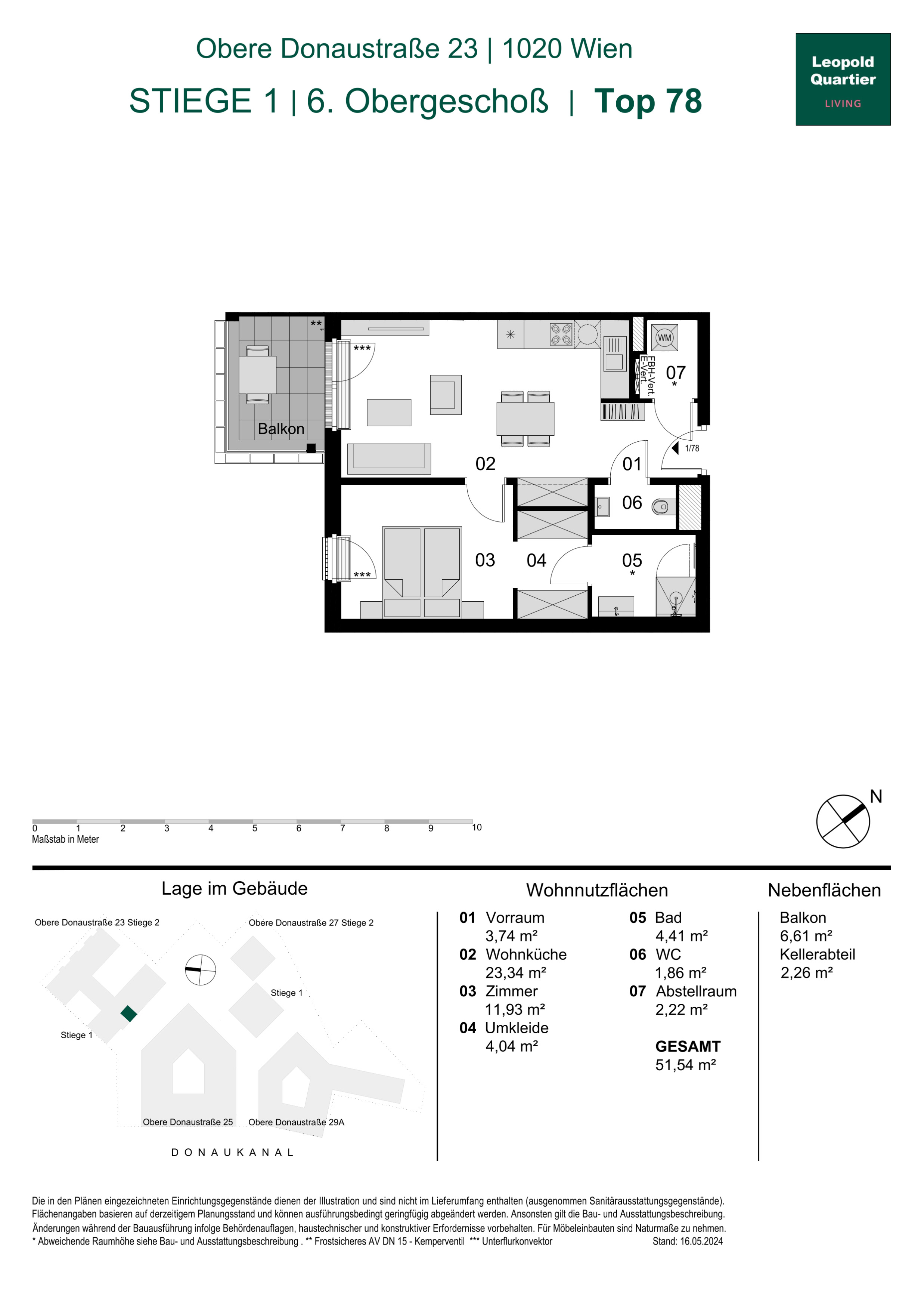 Eingebettet zwischen dem Donaukanal, dem grünen Augarten und dem pulsierenden 1. Wiener Gemeindebezirk vereint das LeopoldQuartier Natur, Urbanität und höchste Lebensqualität. Stephansdom, Kärntner Straße und die kulinarischen Hotspots des Servitenviertels sind fußläufig erreichbar.