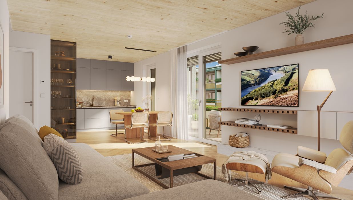 Die natürliche Materialität schafft ein gesundes Raumklima, kombiniert mit moderner Technik für maximalen Komfort.