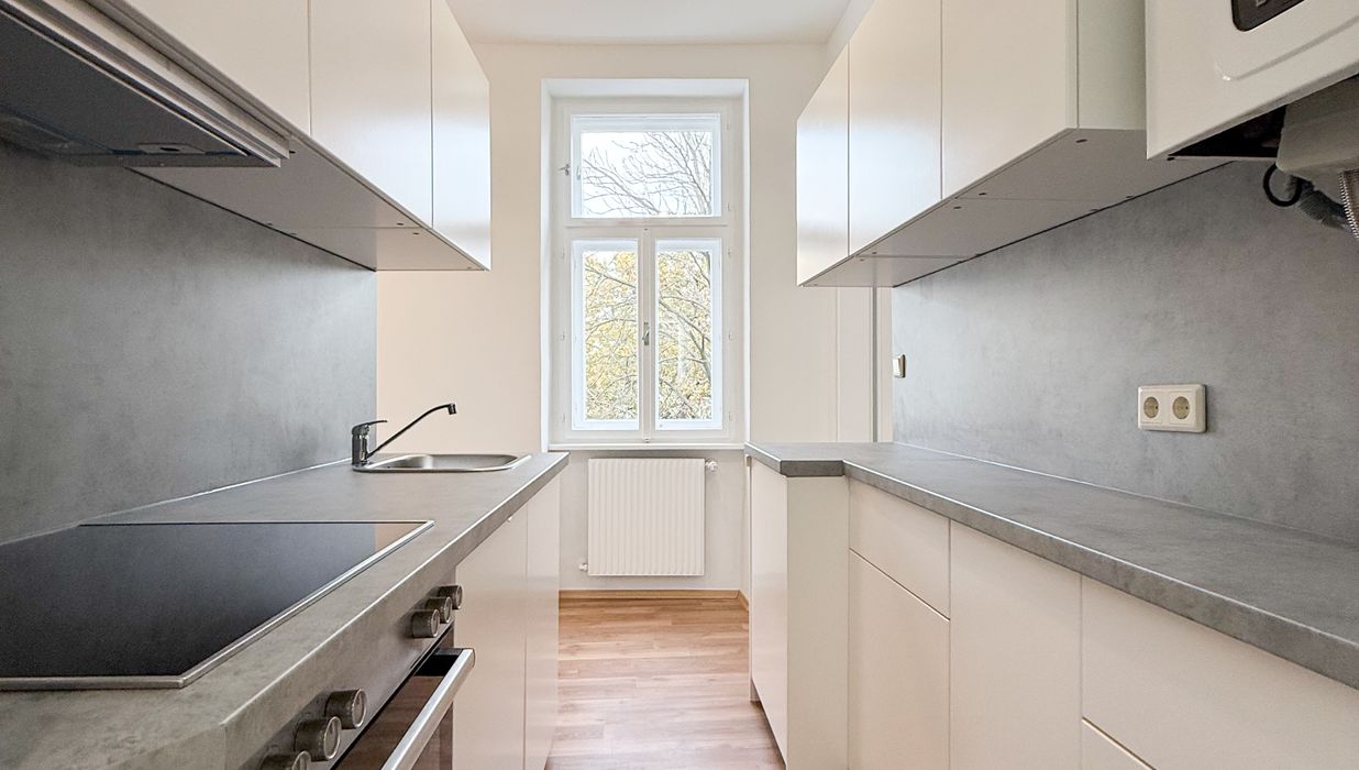 Küchenbereich – funktional angelegt, mit Fenster, Dunstabzug und allen Anschlüssen