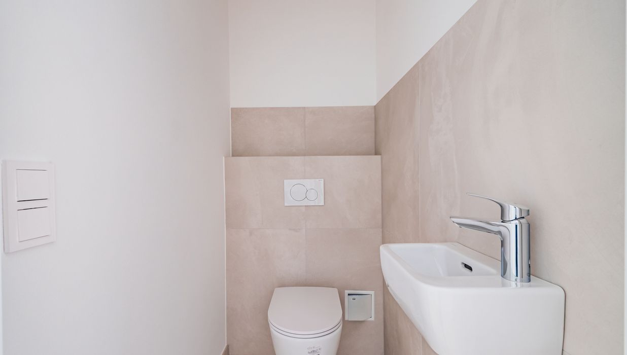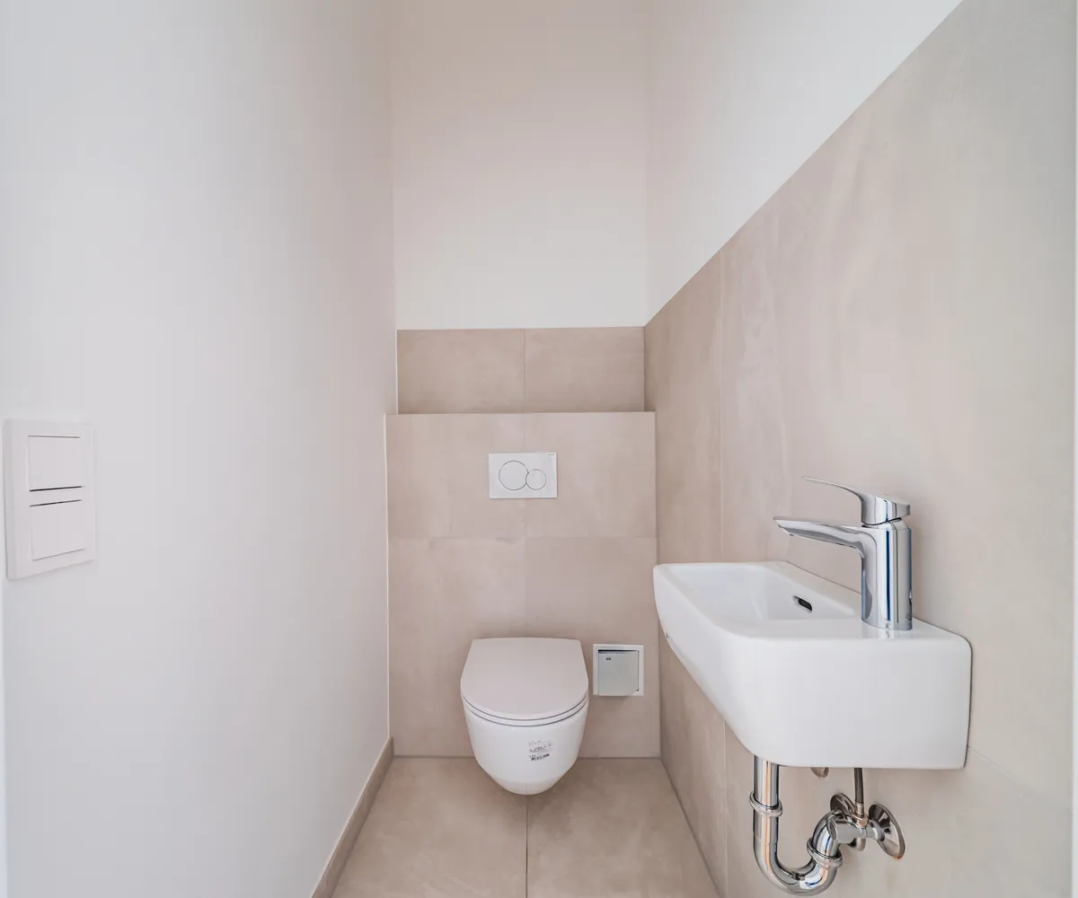 Sie betreten die Wohnung und befinden sich im Vorraum. Gerade durch gelangen Sie in die Wohnküche, von hier gelangen Sie auf die schöne, hofseitige Terrasse. Daneben befindet sich das Schlafzimmer. Sie sind getrennt begehbar. Das Bad ist mit einer Dusche, einem Waschbecken und einem Handtuchtrockner ausgestattet. Das separate WC ist vom Vorraum aus zu erreichen.