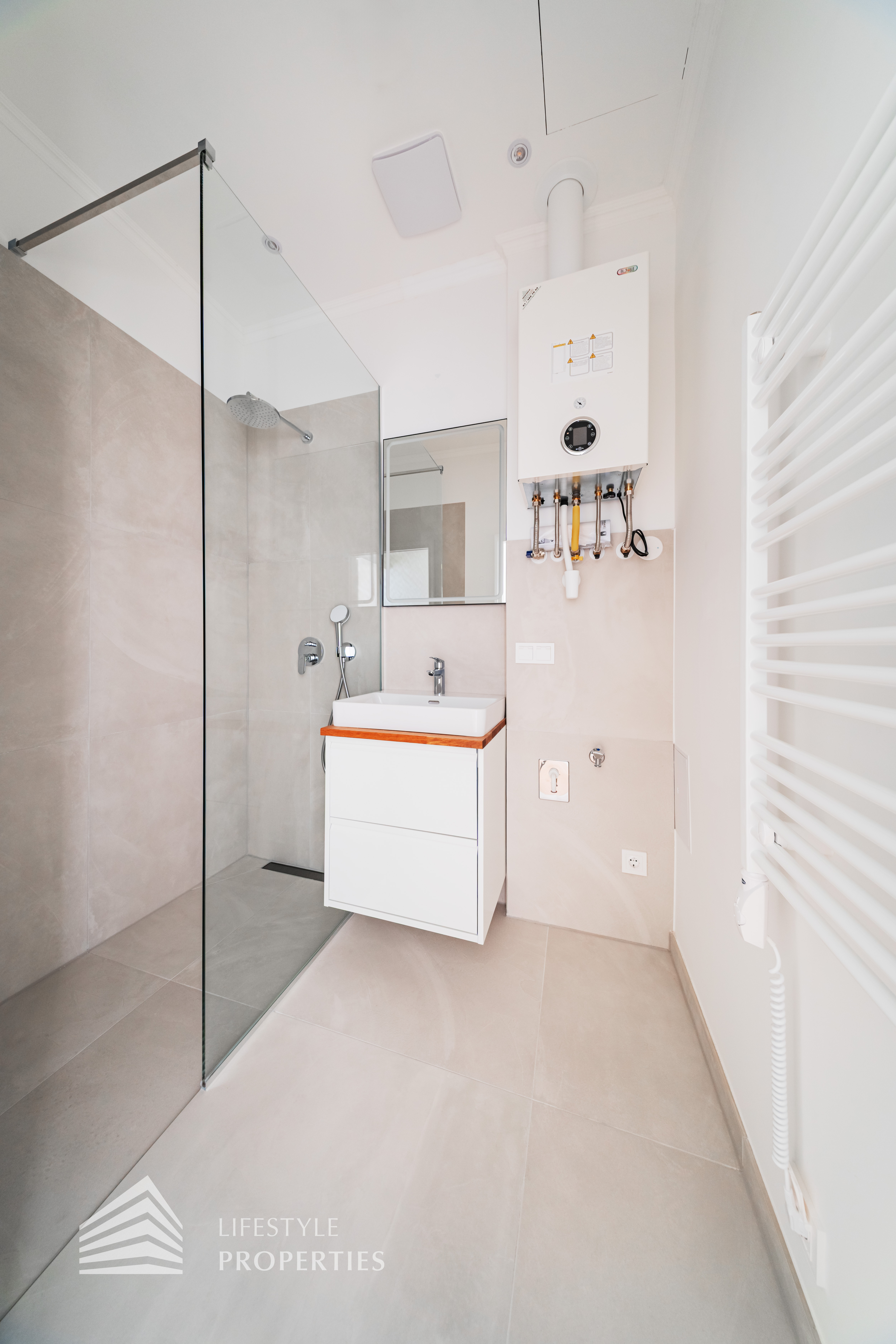 Sie ist ein Erstbezug und befindet sich im EG eines in der Jahrhundertwende erbauten Altbaus. Die Wohnung verfügt über eine Größe von ca. 51 m² und gliedert sich in einen Vorraum, eine Wohnküche, ein Zimmer, ein Bad und ein separates WC. Zusätzlich überzeugt die Wohnung mit einer großzügigen Terrasse. Die Wohnräume sind mit schönem Parkett ausgestattet, die Nassräume sind verfliest. Beheizt wird mittels Fußbodenheizung.