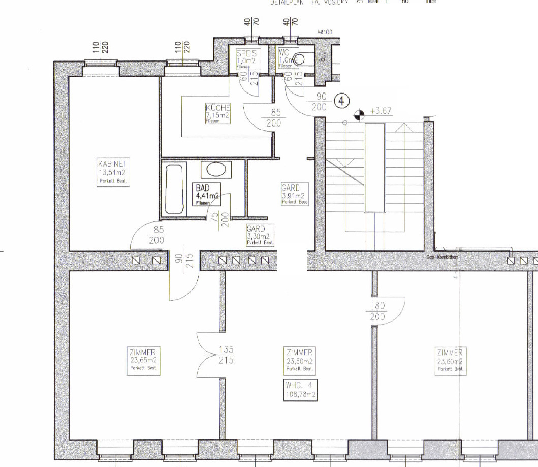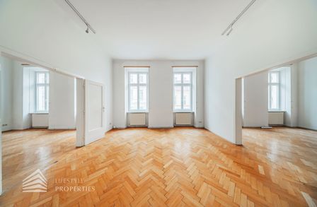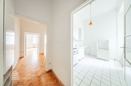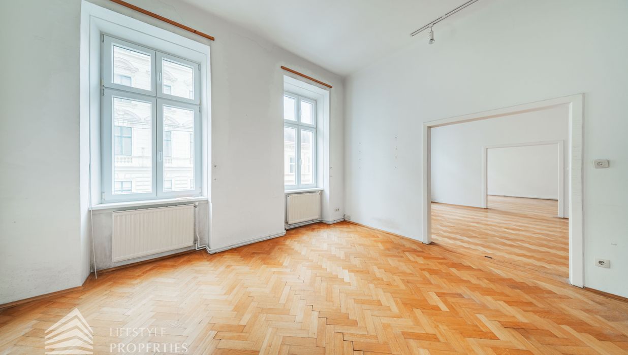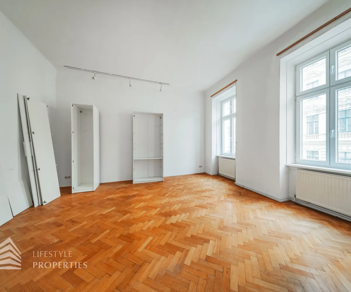 Die Wohnung befindet sich im 1. Stock eines in der Jahrhundertwende erbauten Altbaus und verfügt über eine Größe von ca. 109 m². Diese gliedert sich in einen Vorraum, vier Zimmer, eine Küche, ein Bad und ein separates WC sowie einer Speis.Die Wohnräume sind mit Parkett ausgestattet, die Nassräume sind verfliest.