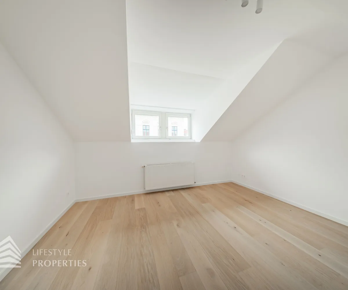 Sie befindet sich im DG eines in der Jahrhundertwende erbauten Altbaus und verfügt über eine Wohnfläche von ca. 96 m². Diese gliedert sich in einen Vorraum, 3 Zimmer, eine Küche, ein Bad und ein separates WC. Zusätzlich zur Wohnfläche überzeugt die Wohnung mit einer ca. 13 m² großen Terrasse. Diese Wohnung wurde mit viel Liebe zum Detail und hochwertigen Materialien umfassend saniert. Das Badezimmer wurde mit modernen Sanitärobjekten ausgestattet und bietet sowohl funktionale als auch ästhetische Highlights. Der Parkettboden in hochwertiger Ausführung sorgt für eine elegante und warme Atmosphäre in allen Wohnräumen. Auch die Terrasse wurde mit einem neuen, exklusiven Terrassenbelag versehen.