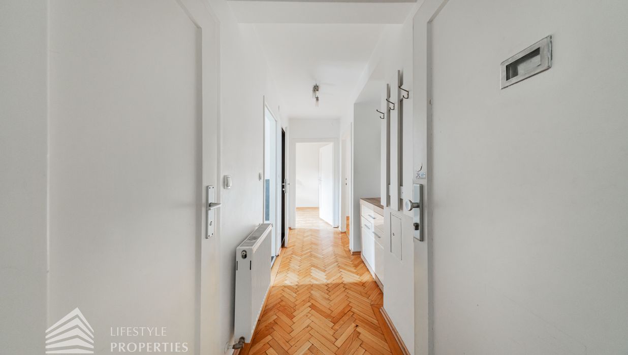 Sie befindet verfügt über ca. 43 m² und befindet sich im 2. Stock eines im Jahr 1936 erbauten Altbaus, welcher zwei Stiegen mit insgesamt 28 Wohneinheiten umfasst.