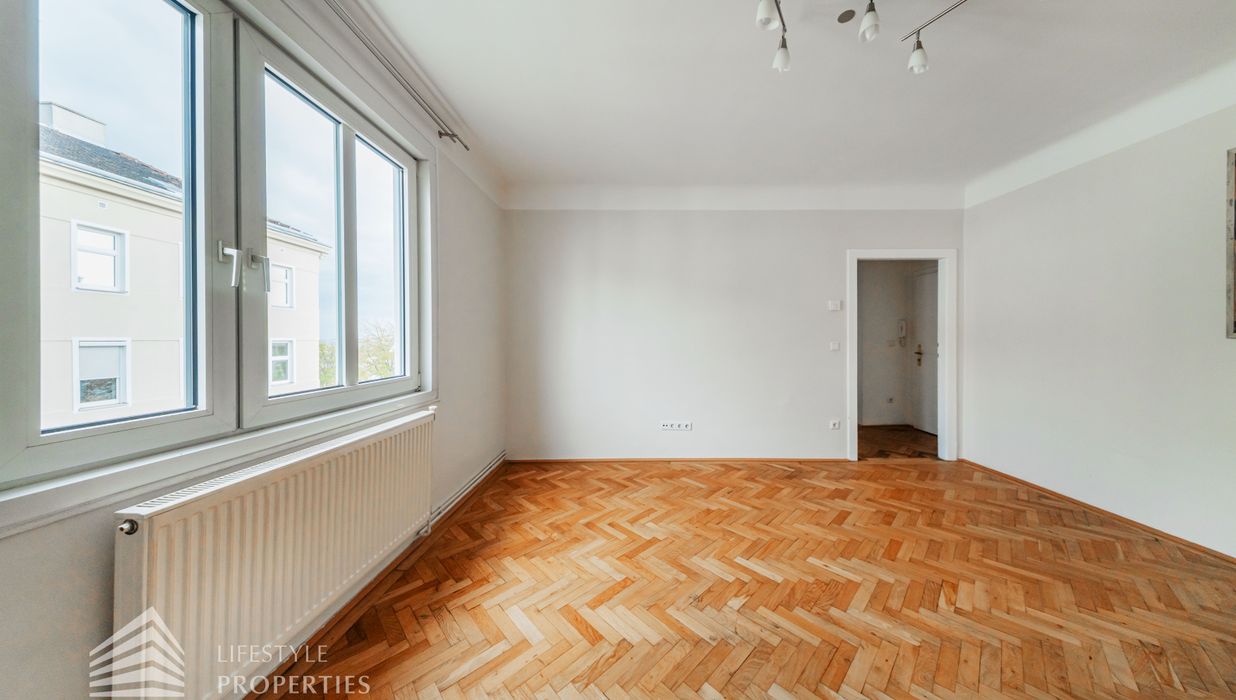 Sie befindet verfügt über ca. 34 m² und befindet sich im 3. Stock eines im Jahr 1936 erbauten Altbaus, welcher zwei Stiegen mit insgesamt 28 Wohneinheiten umfasst.