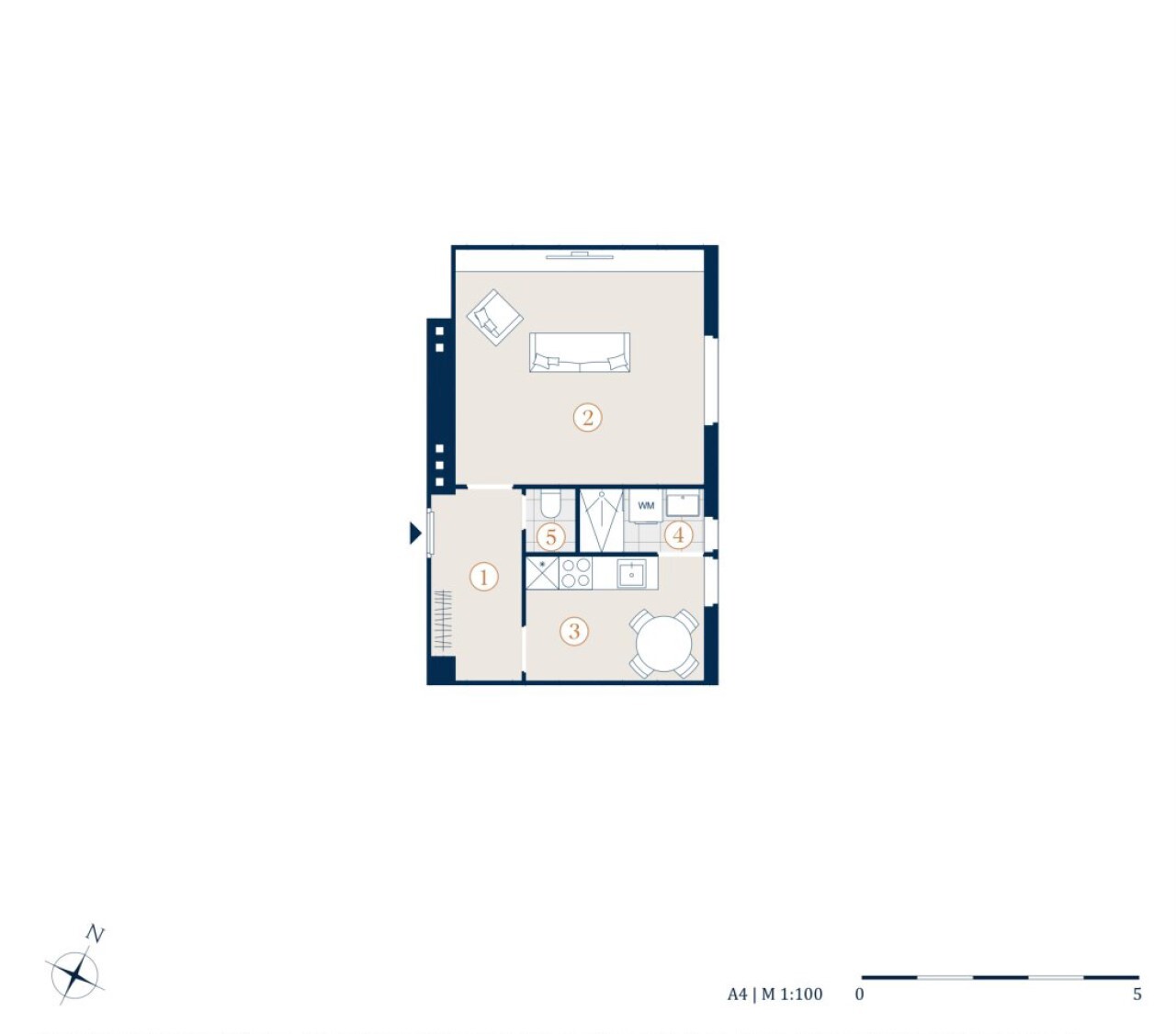 Die Wohnung gliedert sich in einen Vorraum, einen Wohn- Schlafraum, eine Küche, ein Badezimmer und ein separates WC.