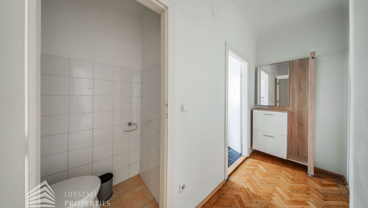 Sie befindet verfügt über ca. 35 m² und befindet sich im 4.Stock eines im Jahr 1936 erbauten Altbaus, welcher zwei Stiegen mit insgesamt 28 Wohneinheiten umfasst.