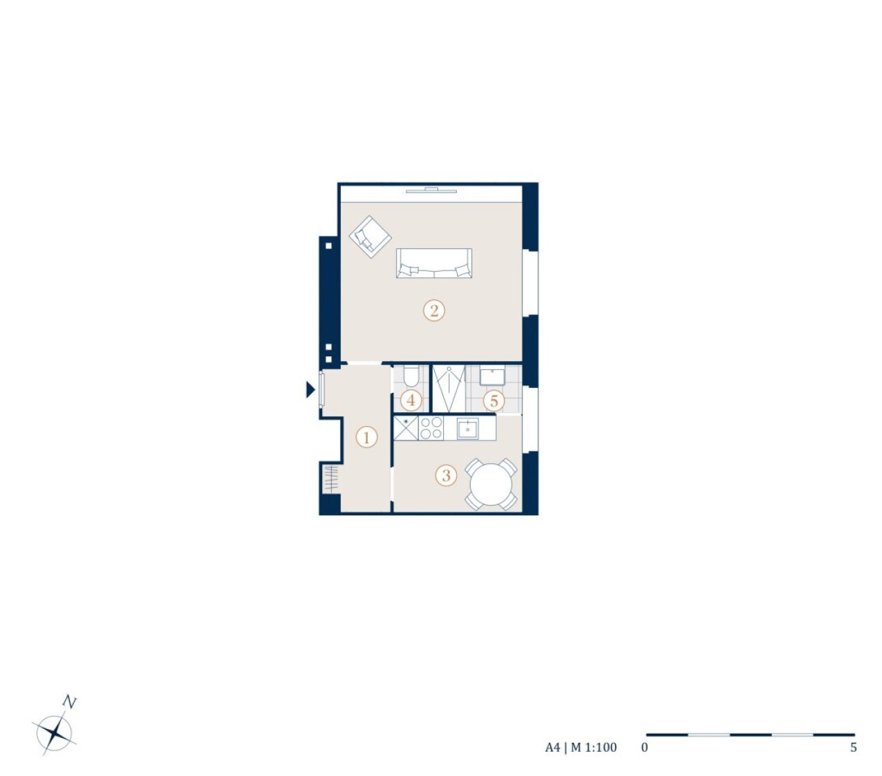 Die Wohnung gliedert sich in einen Vorraum, einen Wohn- Schlafraum, eine Küche, ein Badezimmer und ein separates WC.