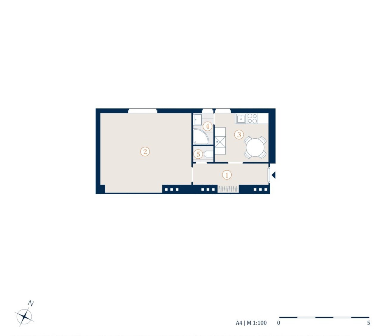 Sie betreten die Wohnung und befinden sich im Vorraum. Gerade durch gelangen Sie in den Wohn- Schlafraum. Des Weiteren gelangen Sie vom Vorraum in die voll ausgestattete Küche und in das Bad. Dieses ist mit einer Dusche und einem Waschbecken ausgestattet. Das separate WC ist auch vom Vorraum erreichbar.
