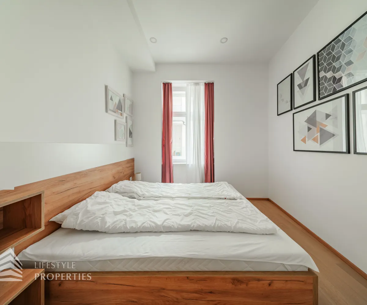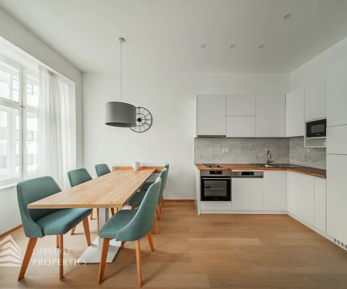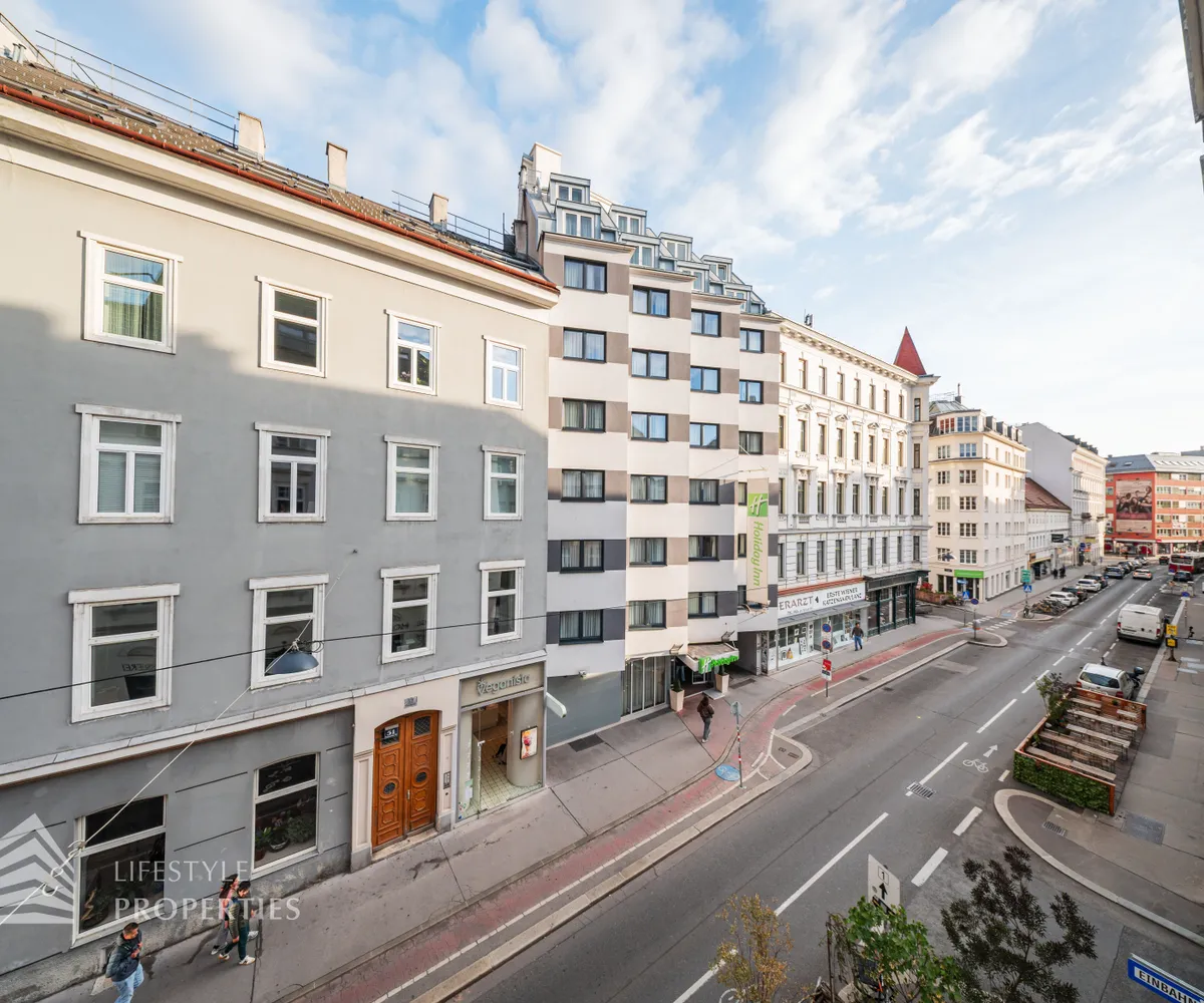 Diese hochwertige 3-Zimmer-Eigentumswohnung befindet sich im 2. Liftstock eines vor ungefähr 5 Jahren sanierten Hauses. Die Wohnung bietet auf ca. 75 m² Wohnfläche modernen Komfort, ergänzt durch einen Balkon von ca. 8 m² mit Wasseranschluss zum ruhigen Innenhof. In puncto Ausstattung überzeugt diese Wohnung mit hochwertigen Materialien und technischer Raffinesse: Ein eleganter Tarkett-Boden in allen Wohnräumen verleiht Wärme und Harmonie. Vollholztüren und dezente Designakzente schaffen eine warme Atmosphäre. Das Beleuchtungskonzept mit dimmbaren Zonen unterstreicht das moderne Raumgefühl, während deckenintegrierte Vorhangsysteme mit maßgeschneiderten Stoffen eine harmonische Einheit ergeben. Die Küche ist nach Maß gefertigt und ausgestattet mit Geräten namhafter Hersteller sowie hochwertigen Armaturen. Eine Split-Klimaanlage mit Außeneinheit sorgt für angenehme Temperaturen. Die Wohnung wurde kürzlich frisch ausgemalt und ist sofort bezugsfertig. Beheizt wird mittels Gas-Fußbodenheizung.