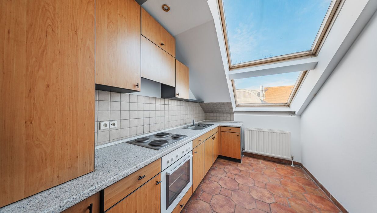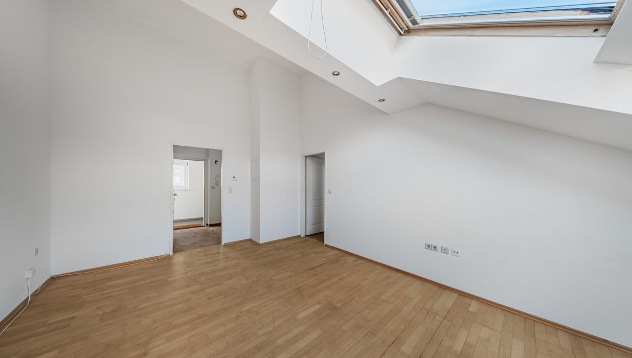 Die sanierungsbedürftige 2,5-Zimmer Einheit befindet sich im Dachgeschoß, verfügt über ca. 51 qm Wohnfläche und ist westseitig ausgerichtet.