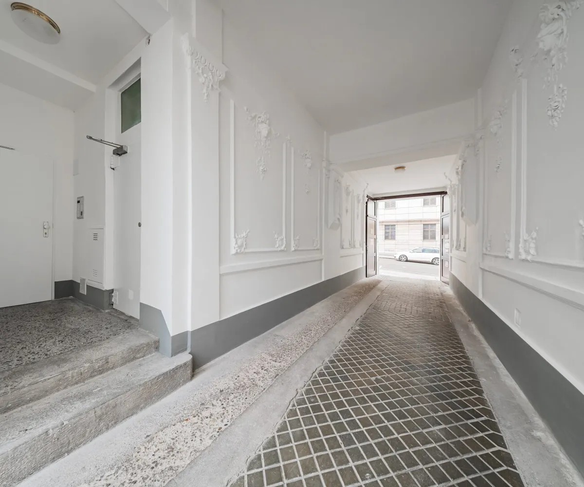 Die fünfstöckige Jahrhundertwendeliegenschaft aus dem Jahre 1897 befindet sich in der Klausgasse und verfügt über ein 1999 ausgebautes Dachgeschoß. Heuer wurden die Fassade, das Stiegenhaus und die Steigleitungen saniert.