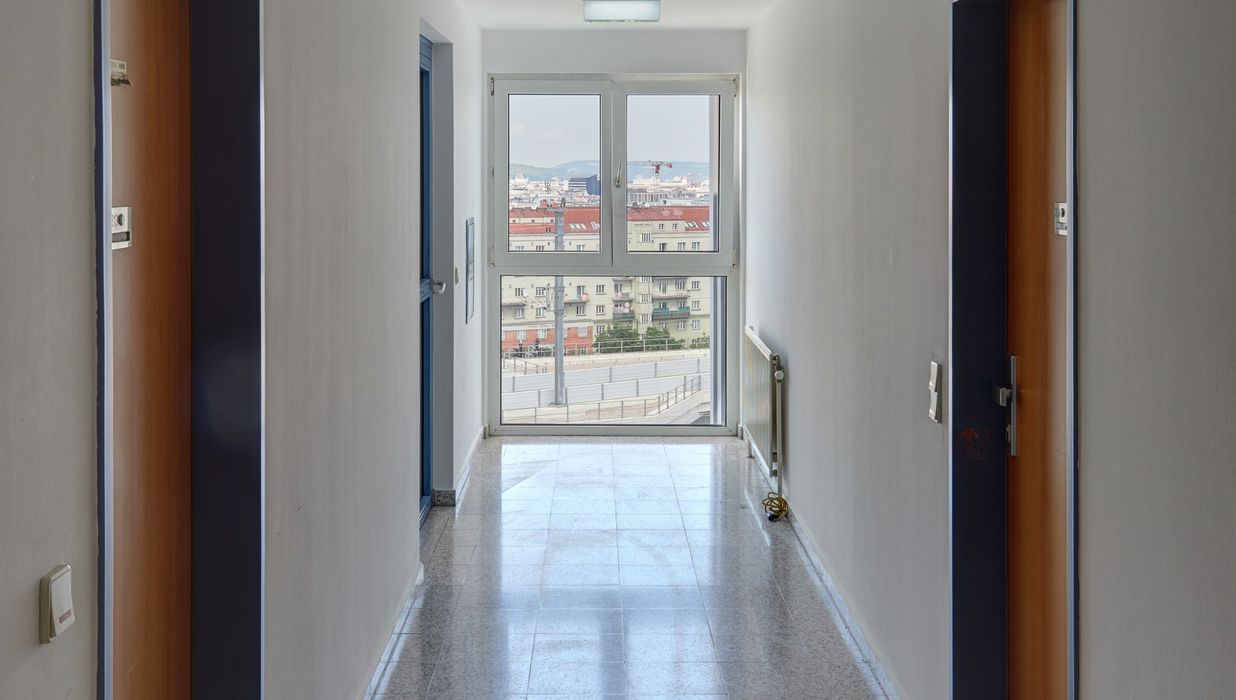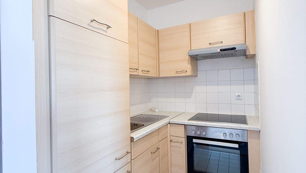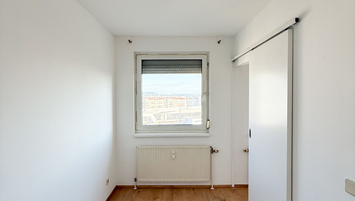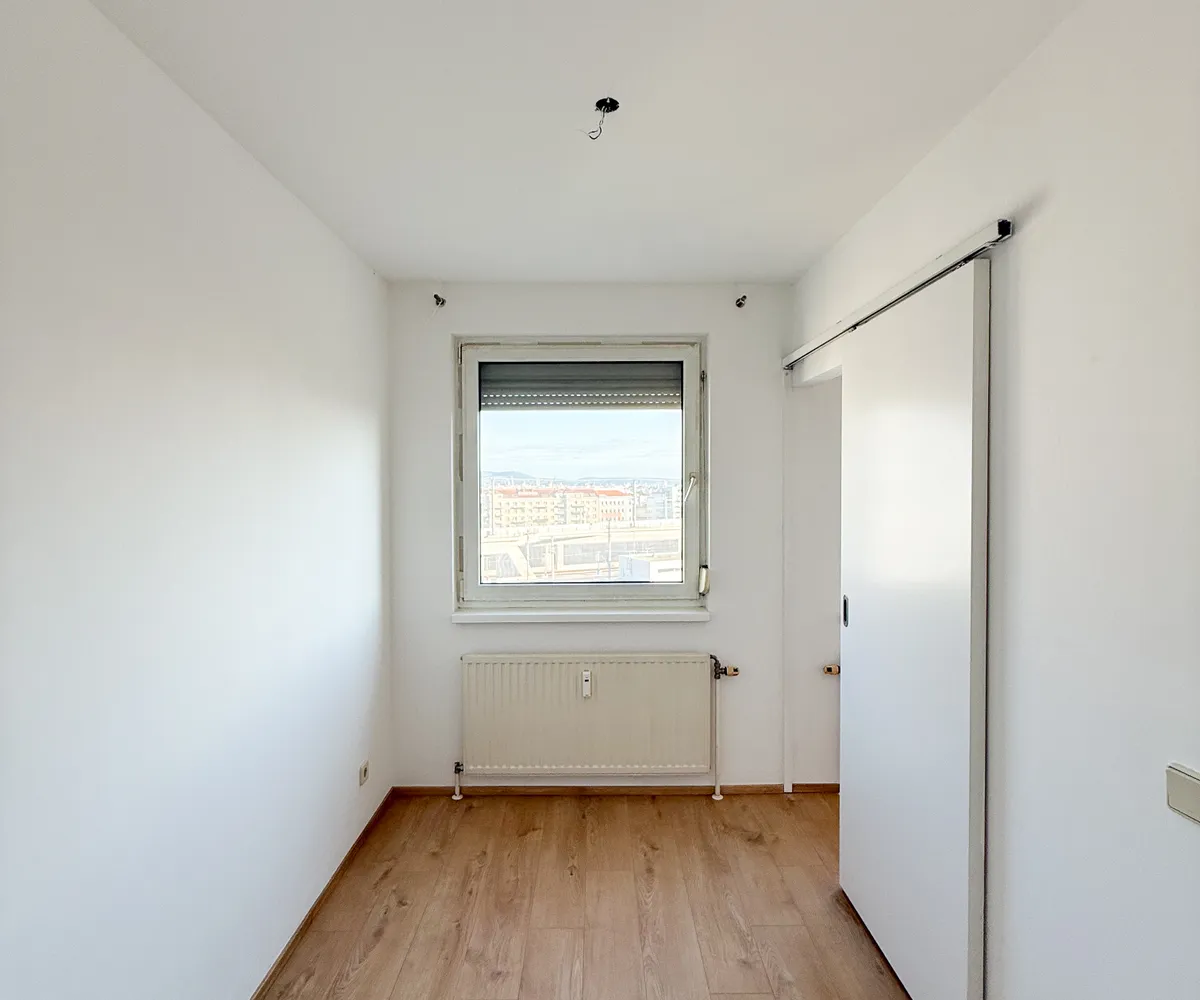 Die Wohnung liegt im 8. Obergeschoß eines 1993 errichteten Mehrfamilienhaus mit glatter Fassade und Personenaufzug. Die ca. 42 m² große 1-Zimmer-Wohnung, verfügt über einen