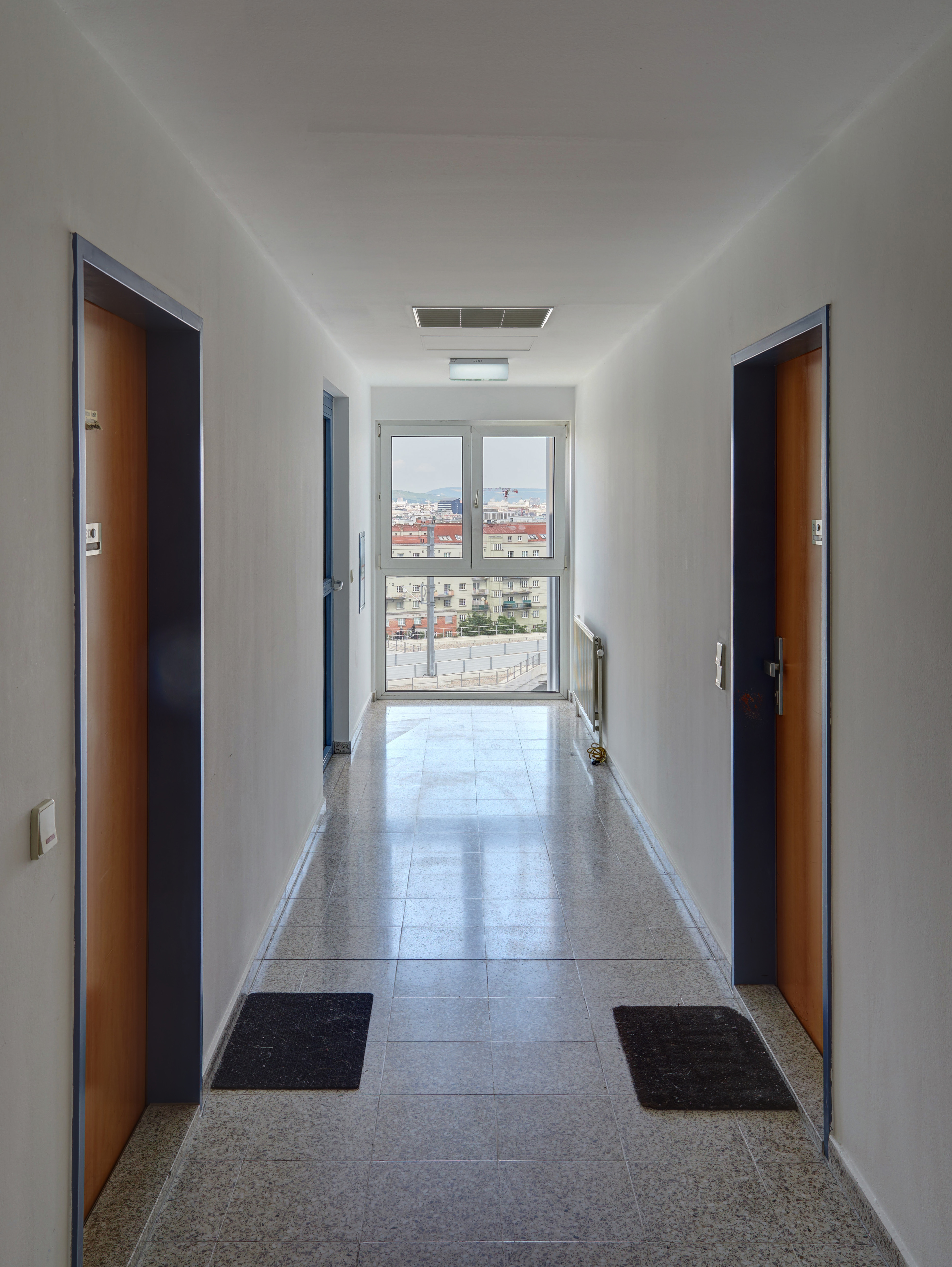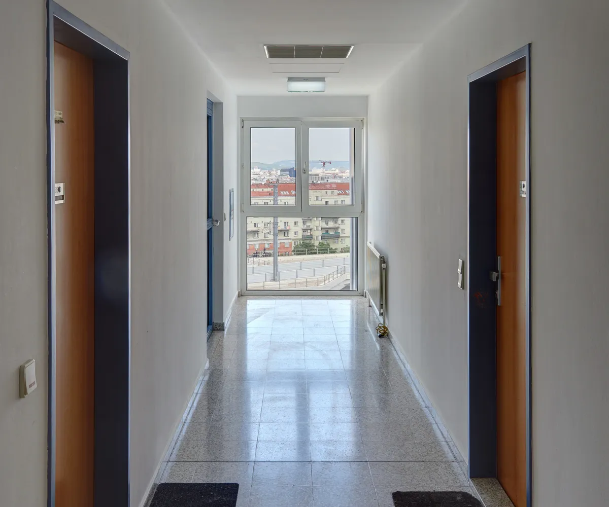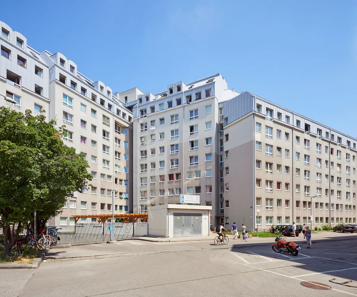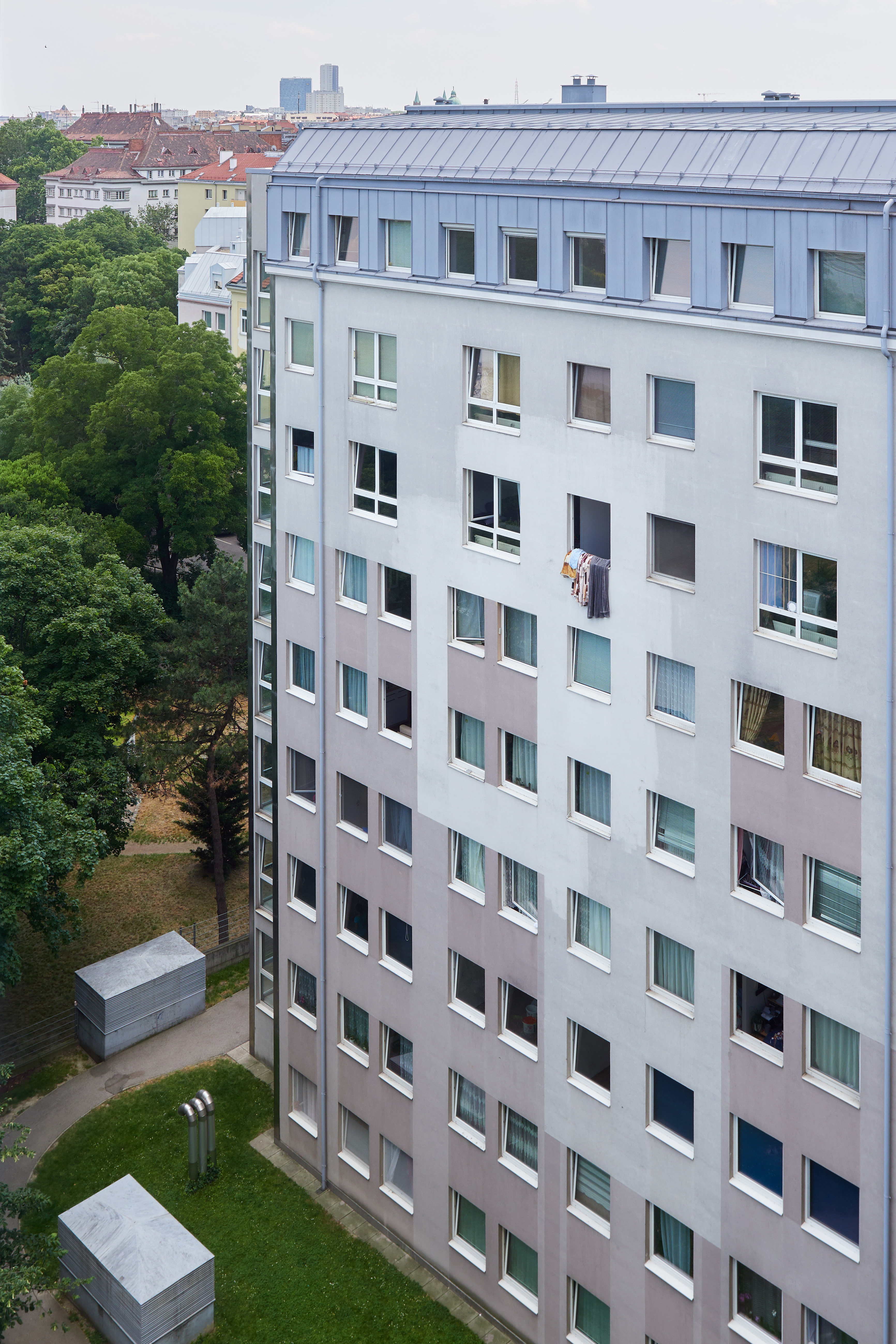 Die Wohnung liegt im 8. Obergeschoß eines 1993 errichteten Mehrfamilienhaus mit glatter Fassade und Personenaufzug. Die ca. 42 m² große 1-Zimmer-Wohnung, verfügt über einen
