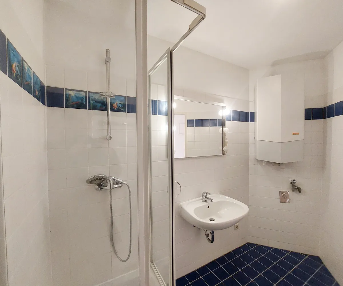 Die Wohnung selbst unterteilt sich in eine gemütliche Wohnraum, mit Schlafbereich und Wohnküche, ein Badezimmer mit Dusche, einem separaten WC und einen Vorraum, sowie einen gemütliche Terrasse, welcher für besonders viele Sonnenstunden am Morgen sorgt.