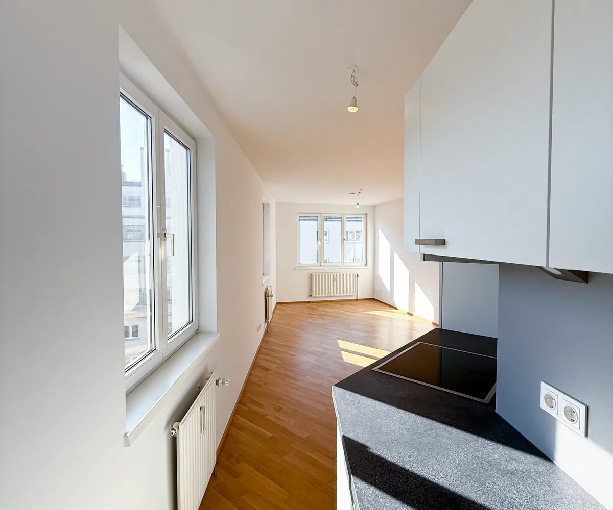 Diese exklusiv sanierte 2-Zimmerwohnung befindet sich im 5.Obergeschoß eines sorgfältig gepflegten Hauses in der Burghardtgasse, Brigittenau . Sie kombiniert stilvolles Ambiente mit ruhigem Innenhofcharakter und einer besonders günstigen Verkehrsanbindung.