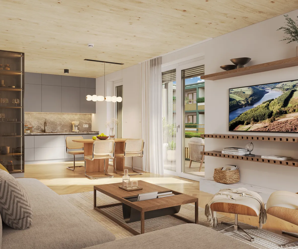 Die natürliche Materialität schafft ein gesundes Raumklima, kombiniert mit moderner Technik für maximalen Komfort.