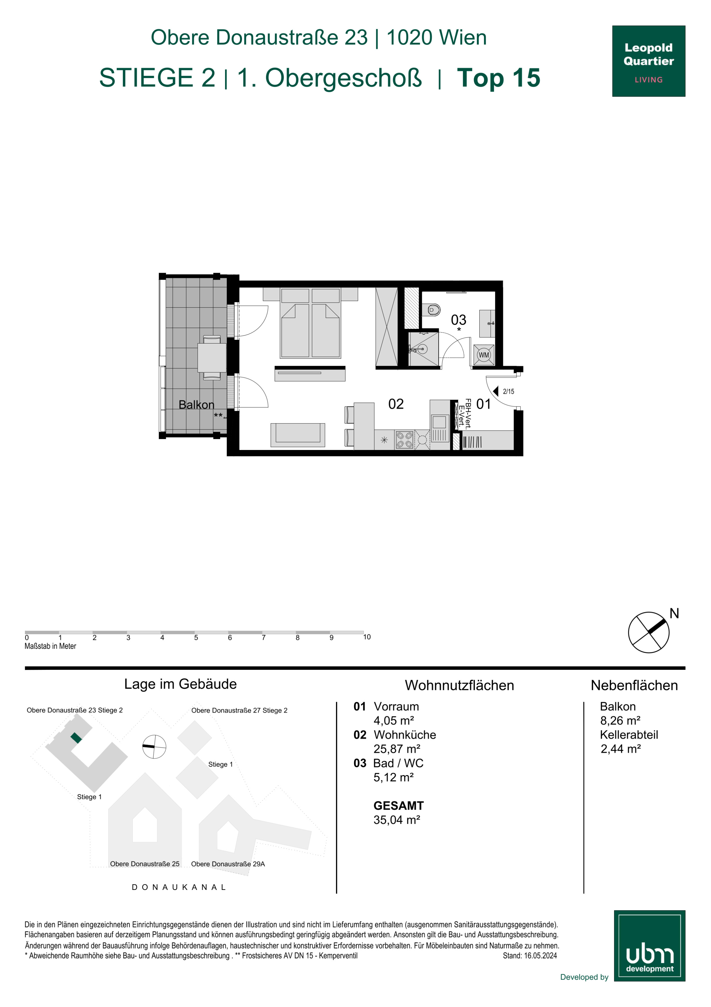 Eingebettet zwischen dem Donaukanal, dem grünen Augarten und dem pulsierenden 1. Wiener Gemeindebezirk vereint das LeopoldQuartier Natur, Urbanität und höchste Lebensqualität. Stephansdom, Kärntner Straße und die kulinarischen Hotspots des Servitenviertels sind fußläufig erreichbar.