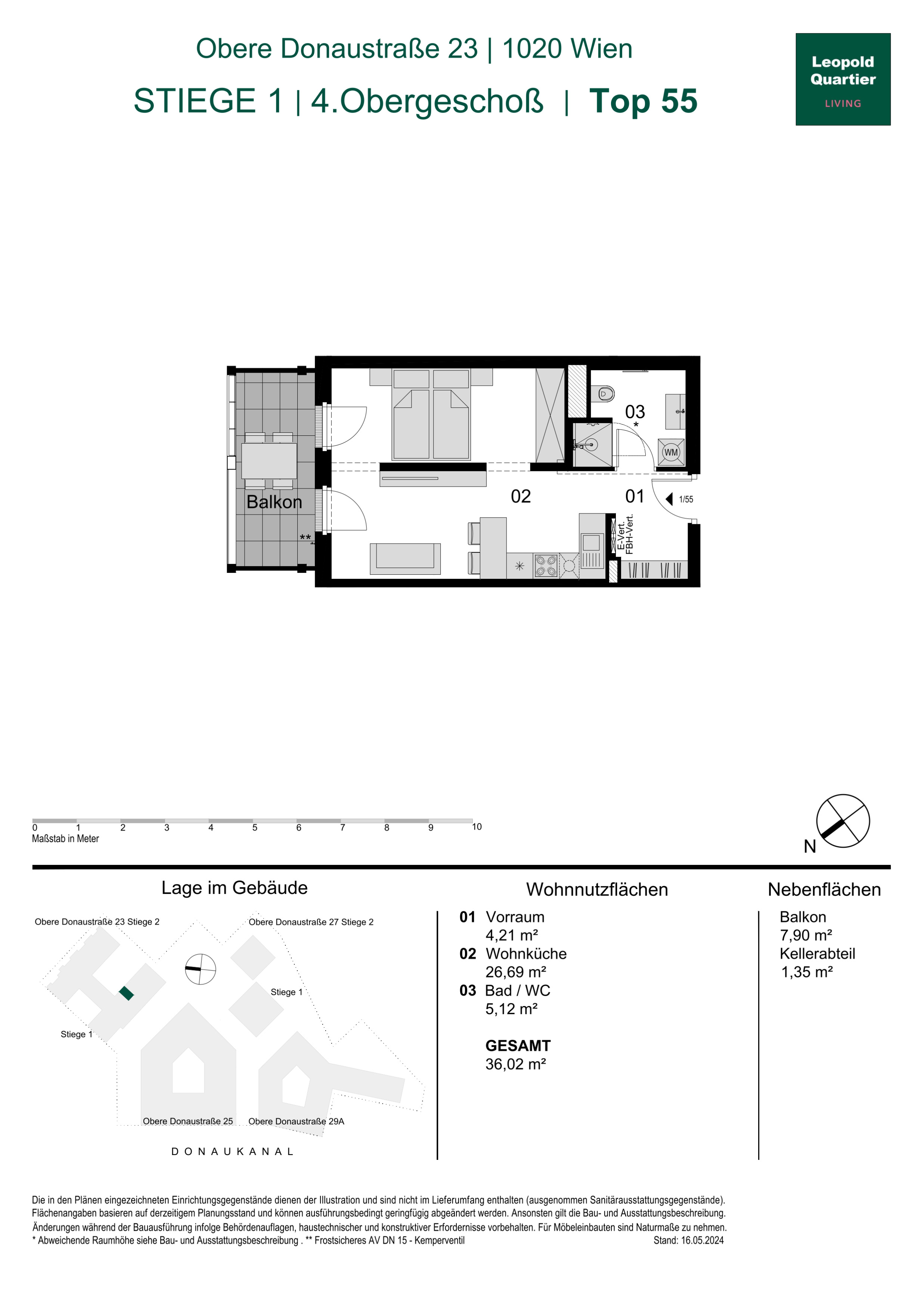 Eingebettet zwischen dem Donaukanal, dem grünen Augarten und dem pulsierenden 1. Wiener Gemeindebezirk vereint das LeopoldQuartier Natur, Urbanität und höchste Lebensqualität. Stephansdom, Kärntner Straße und die kulinarischen Hotspots des Servitenviertels sind fußläufig erreichbar.