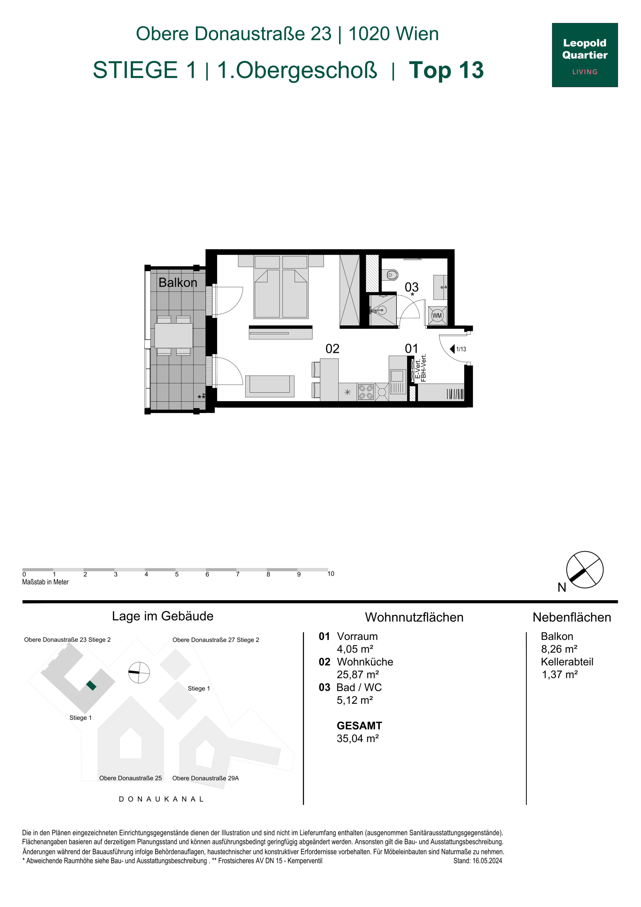 Eingebettet zwischen dem Donaukanal, dem grünen Augarten und dem pulsierenden 1. Wiener Gemeindebezirk vereint das LeopoldQuartier Natur, Urbanität und höchste Lebensqualität. Stephansdom, Kärntner Straße und die kulinarischen Hotspots des Servitenviertels sind fußläufig erreichbar.