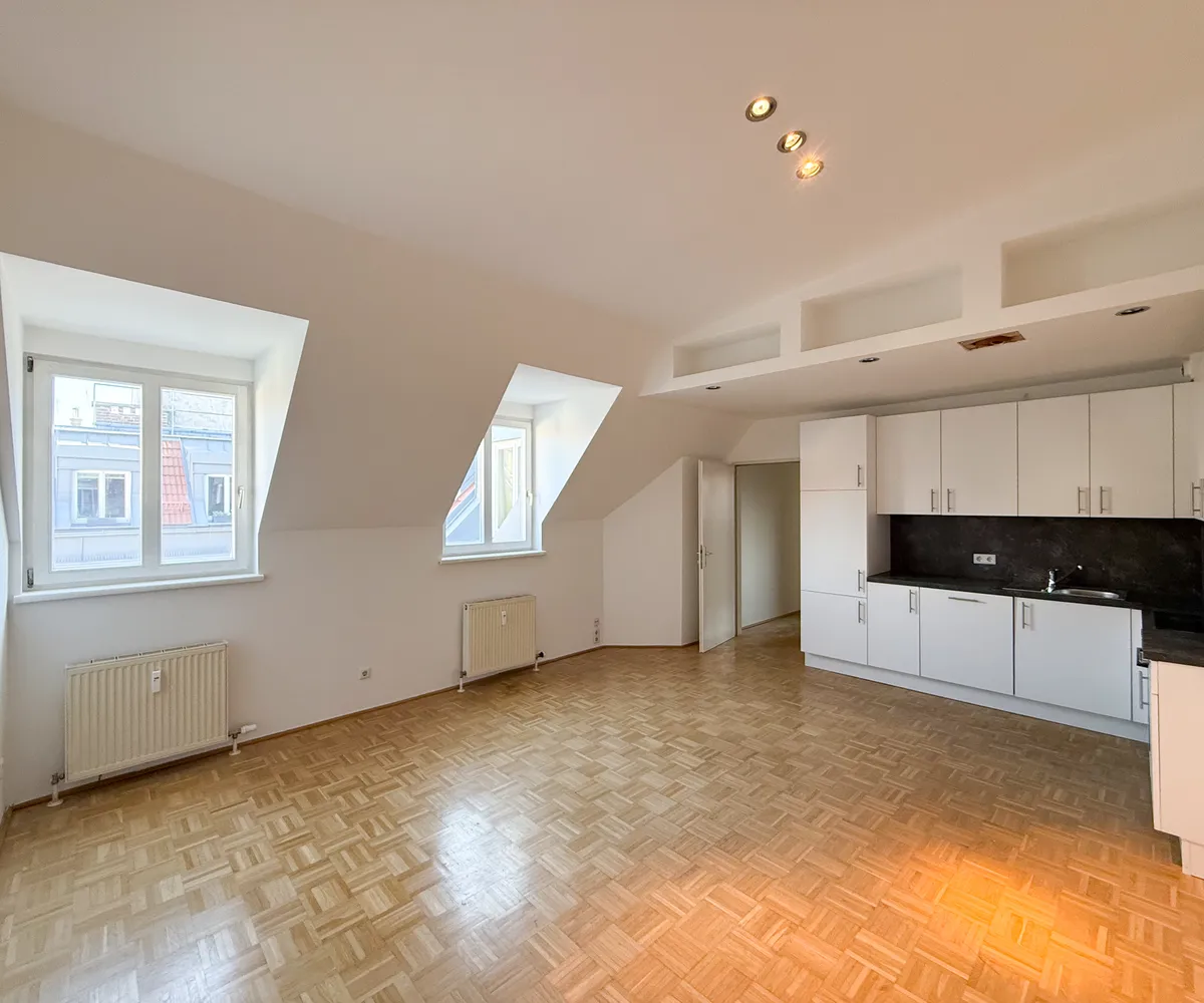Zur Vermietung gelangt eine ca. 62 m² große 3-Zimmer-Wohnung im beliebten 7. Wiener Gemeindebezirk. Die Wohnung befindet sich im 1.Dachgeschoß eines gepflegten Altbaus und überzeugt durch ihre ruhige, vollständig hofseitige Ausrichtung sowie ihren funktionalen Grundriss.