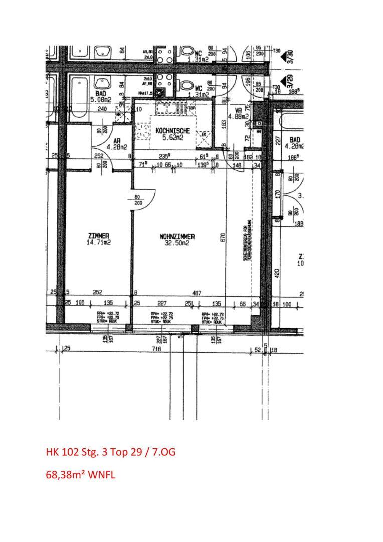 Die Wohnung selbst befindet sich im 7. Obergeschoss und verfügt über eine großzügige Wohnküche mit Kochnische, ein Schlafzimmer, ein Badezimmer mit Badewanne und Waschmaschinenanschluss, ein separates WC, sowie einen Vorraum und Abstellraum.