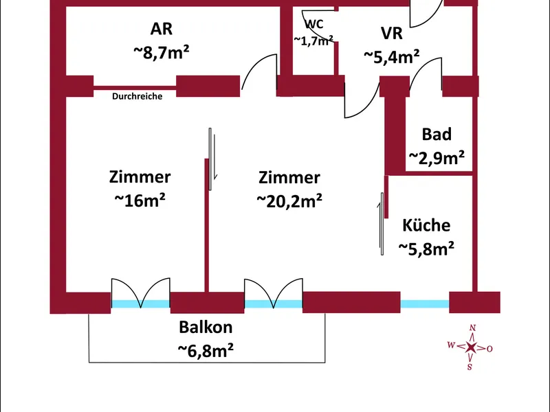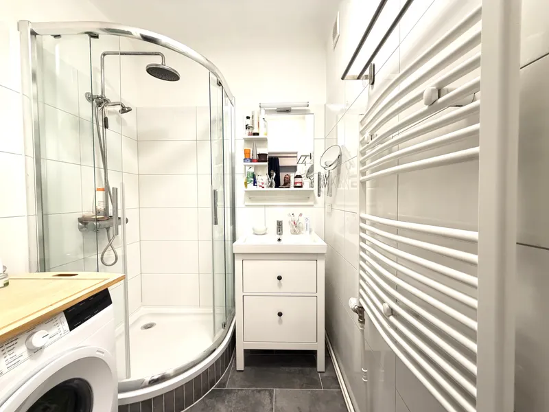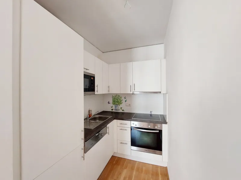 Die separate Küche, Klimaanlage und der durchdachte Grundriss sorgen für hohen Wohnkomfort. Ideal für Paare oder Singles, die urbanes Wohnen mit Privatsphäre verbinden möchten.