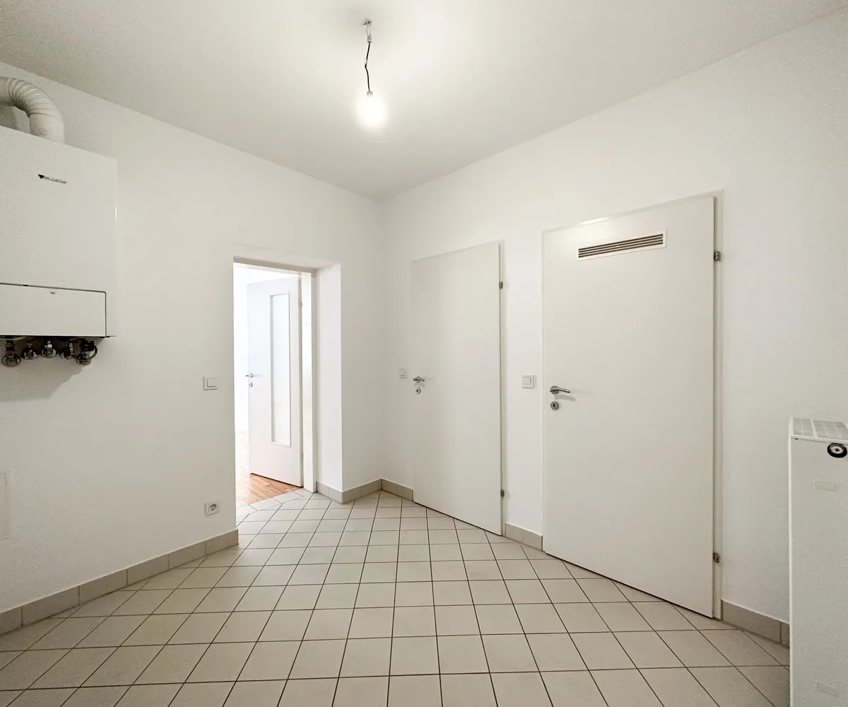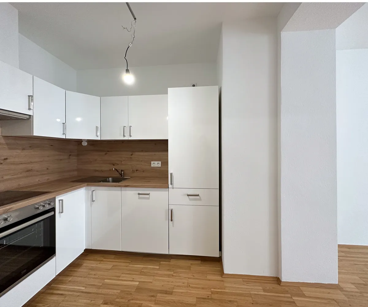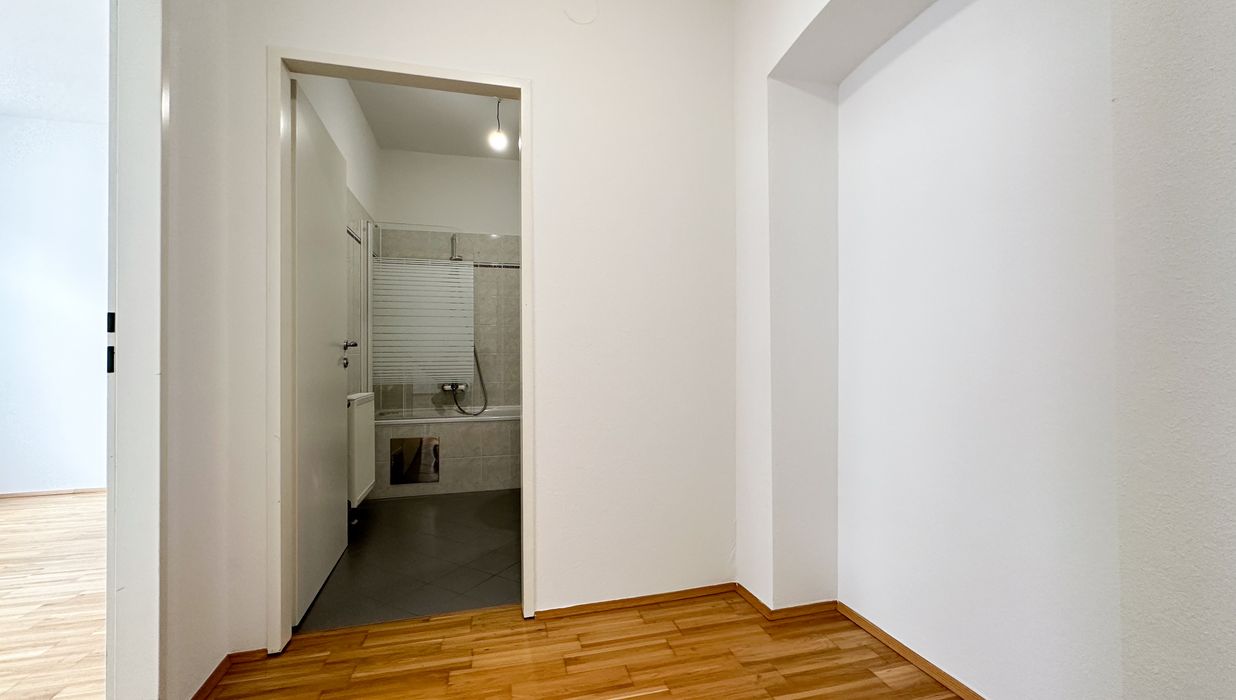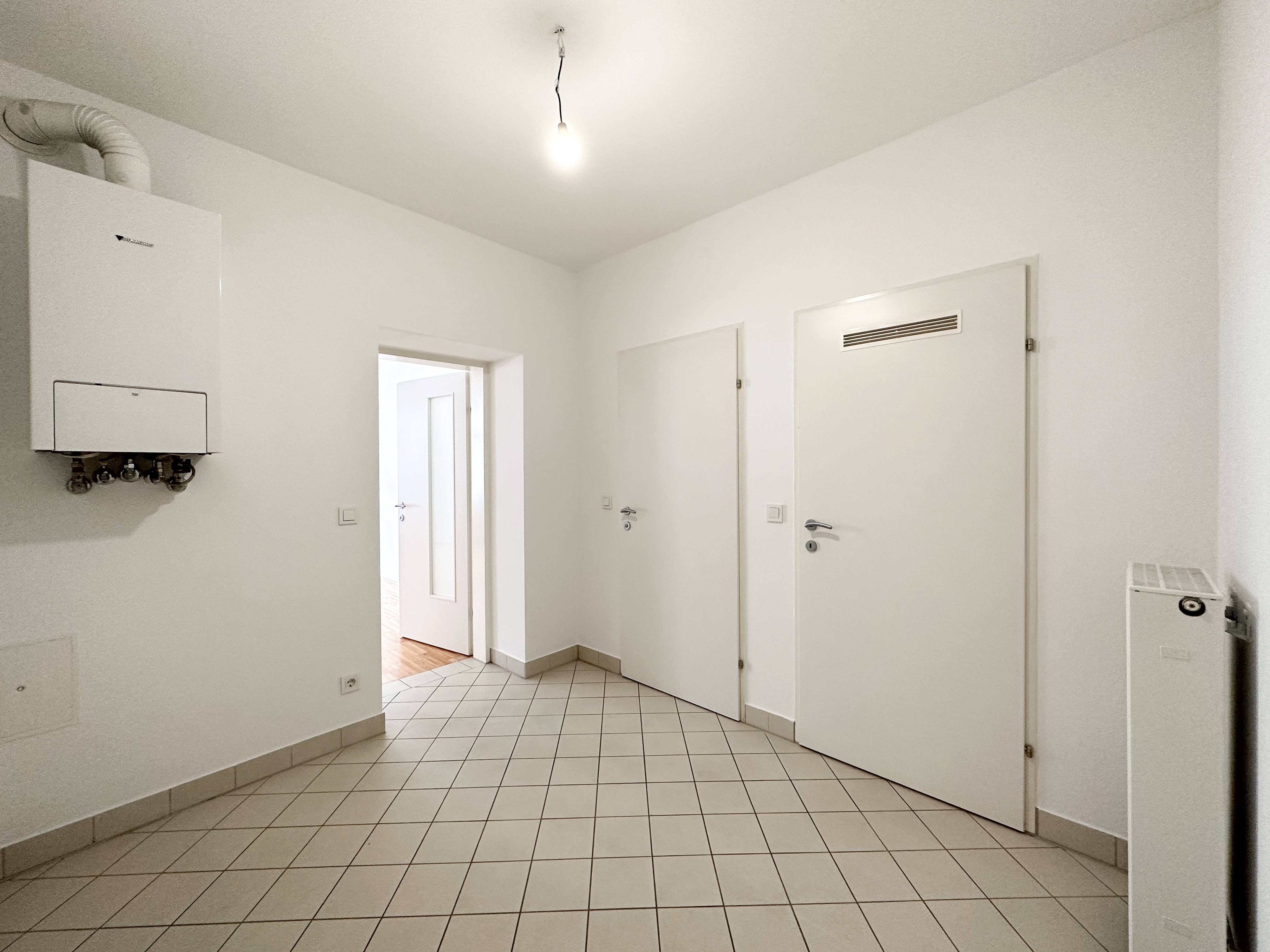 Sie unterteilt sich in einen großzügigen Vorraum mit Zugang zu einem separaten WC sowie Abstellraum. Das Herzstück der Wohnung - das helle Wohn- und Esszimmer - lässt sich ebenfalls durch den Vorraum sowie durch die offene aber doch separate Küche betreten. Diese ist mit einer modernen neuen Einbauküche sowie allen notwendigen Geräten ausgestattet. Einige Schritte weiter gelangen Sie in ein kleinen Vorraum, welcher ideal eine weitere Stauraum-Möglichkeit darstellt. Dieser führt Sie einerseits weiter in das Badezimmer, welches mit einer Badewanne, sowie einem Waschbecken und einem Waschmaschinen-Anschluss ausgestattet ist sowie ins Schlafzimmer der Wohnung, welches sich nach Westen hin ausrichtet und somit angenehme Nachmittagssonne hereinlässt.