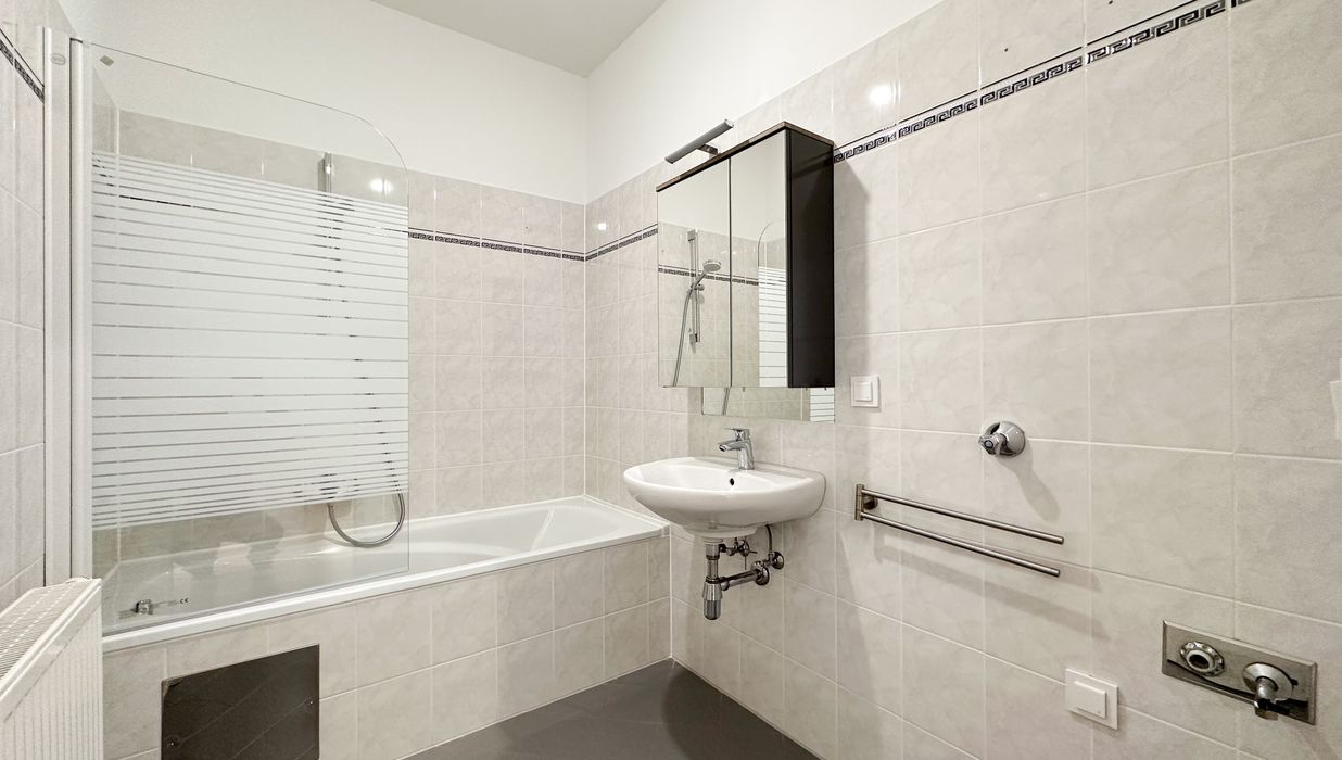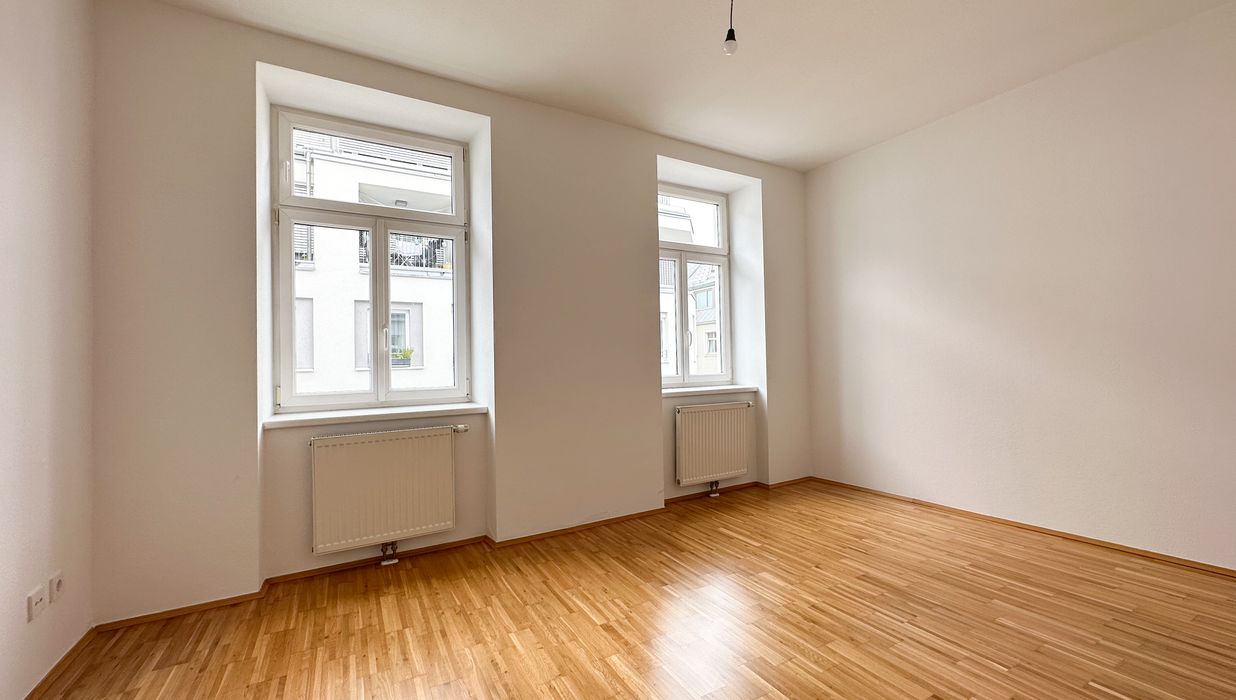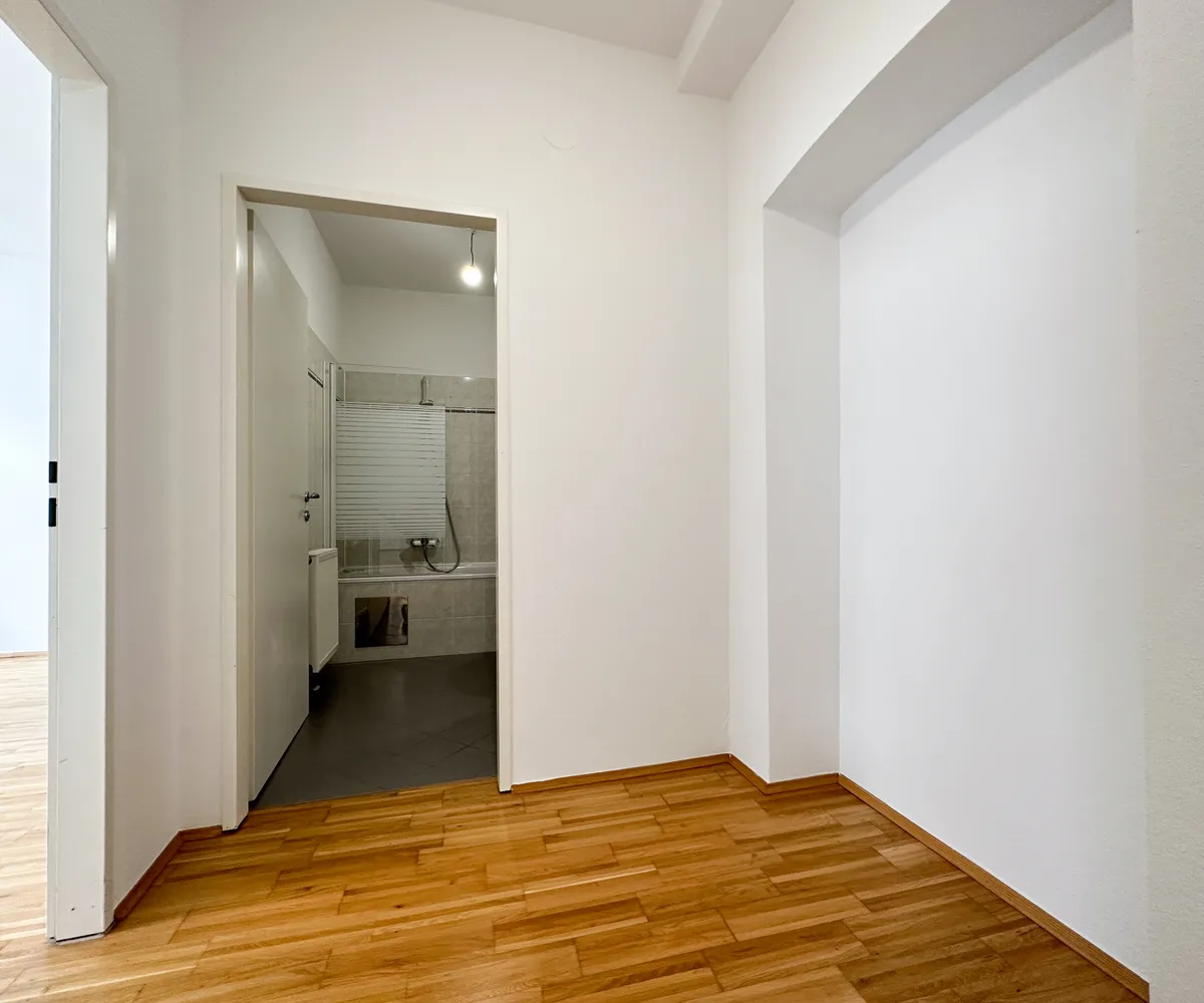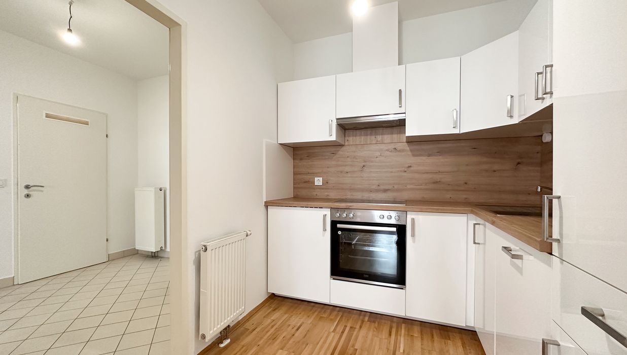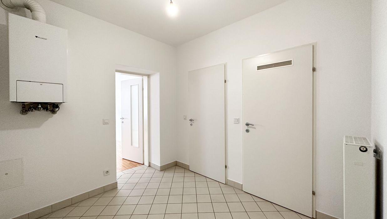 Sie unterteilt sich in einen großzügigen Vorraum mit Zugang zu einem separaten WC sowie Abstellraum. Das Herzstück der Wohnung - das helle Wohn- und Esszimmer - lässt sich ebenfalls durch den Vorraum sowie durch die offene aber doch separate Küche betreten. Diese ist mit einer modernen neuen Einbauküche sowie allen notwendigen Geräten ausgestattet. Einige Schritte weiter gelangen Sie in ein kleinen Vorraum, welcher ideal eine weitere Stauraum-Möglichkeit darstellt. Dieser führt Sie einerseits weiter in das Badezimmer, welches mit einer Badewanne, sowie einem Waschbecken und einem Waschmaschinen-Anschluss ausgestattet ist sowie ins Schlafzimmer der Wohnung, welches sich nach Westen hin ausrichtet und somit angenehme Nachmittagssonne hereinlässt.