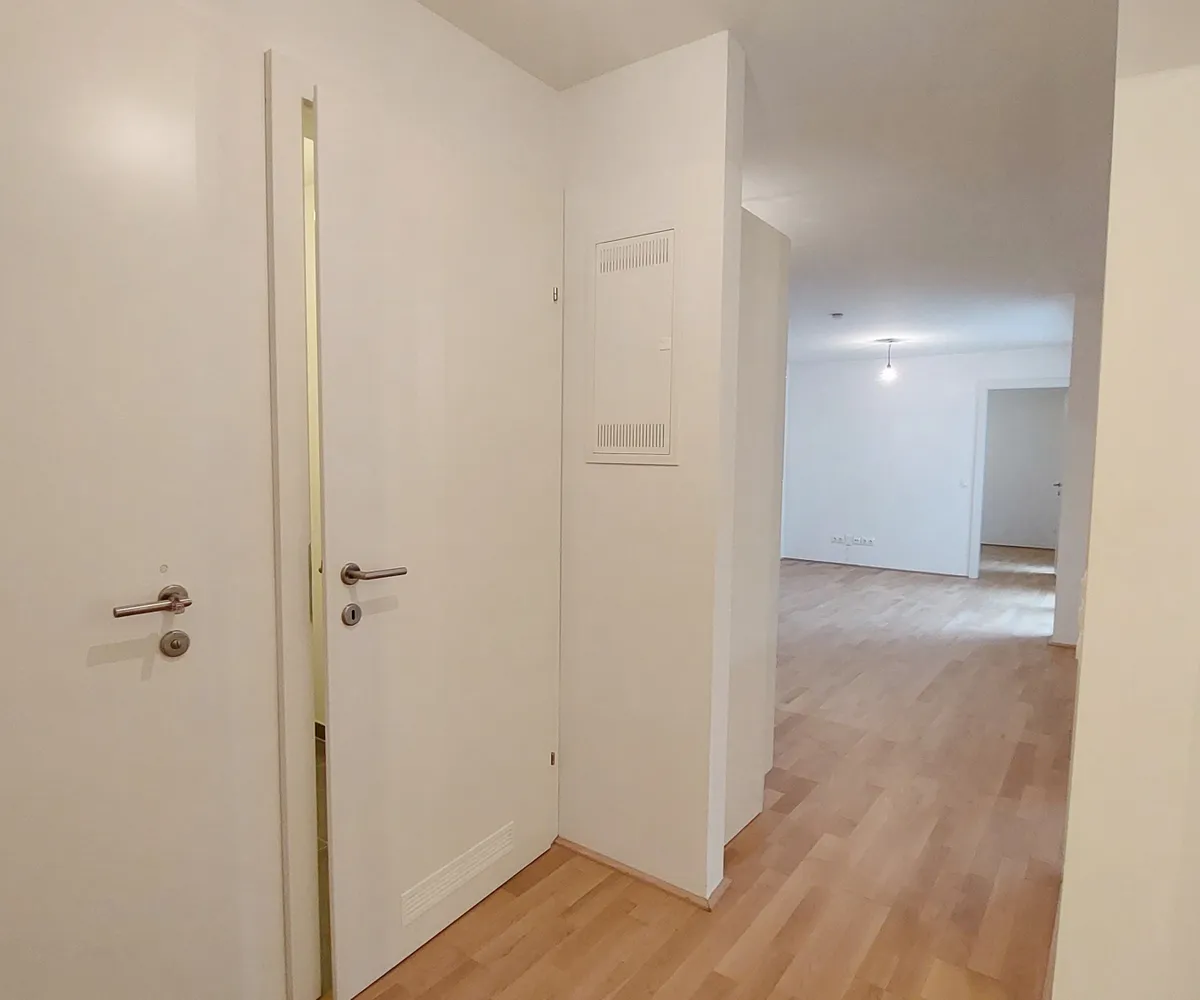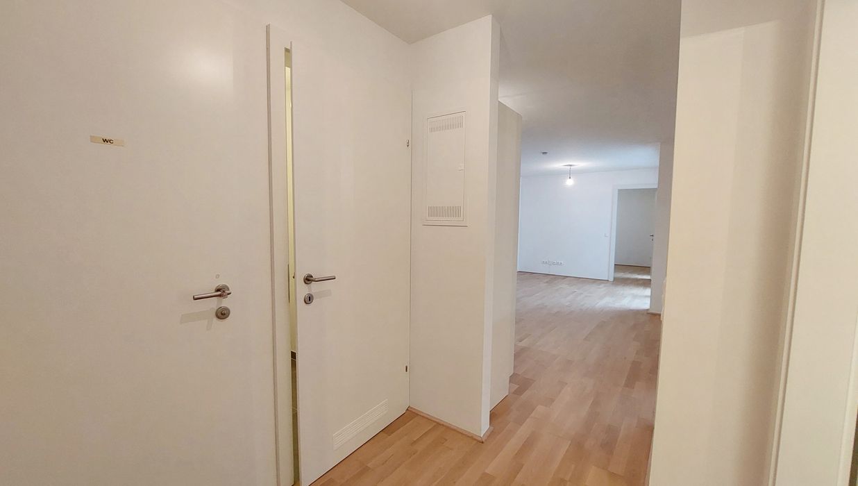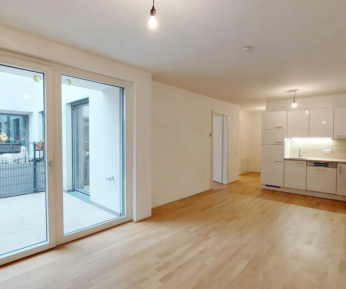 Die Wohnung befindet sich im Erdgeschoss und verfügt über eine Wohnküche, zwei Schlafzimmer, ein Badezimmer mit Badewanne und Waschmaschinenanschluss, ein separates WC, einen Abstellraum, sowie einen Vorraum. Die Terrasse rundet das Wohnerlebnis perfekt ab.