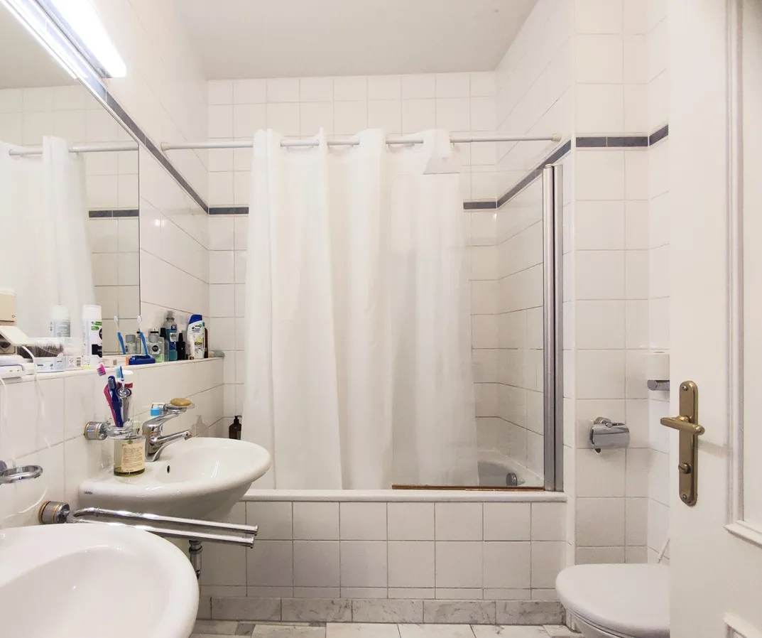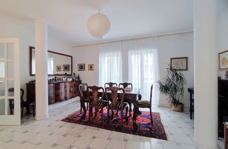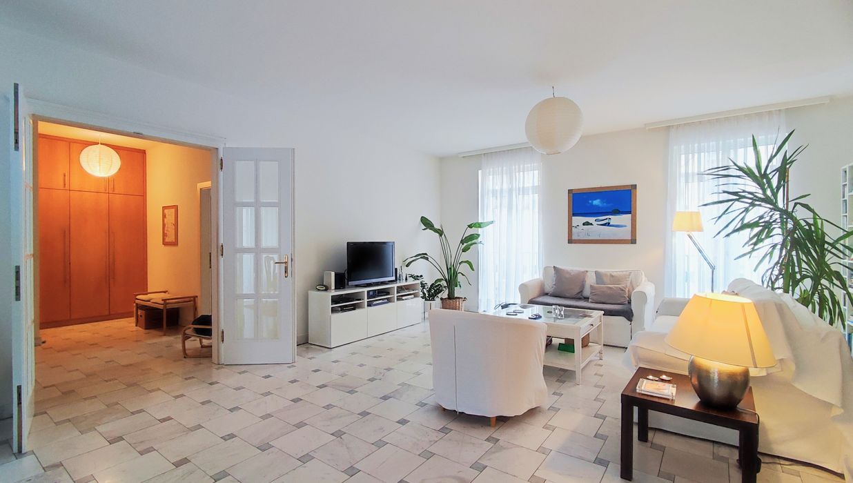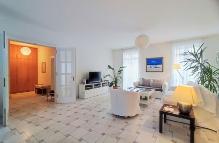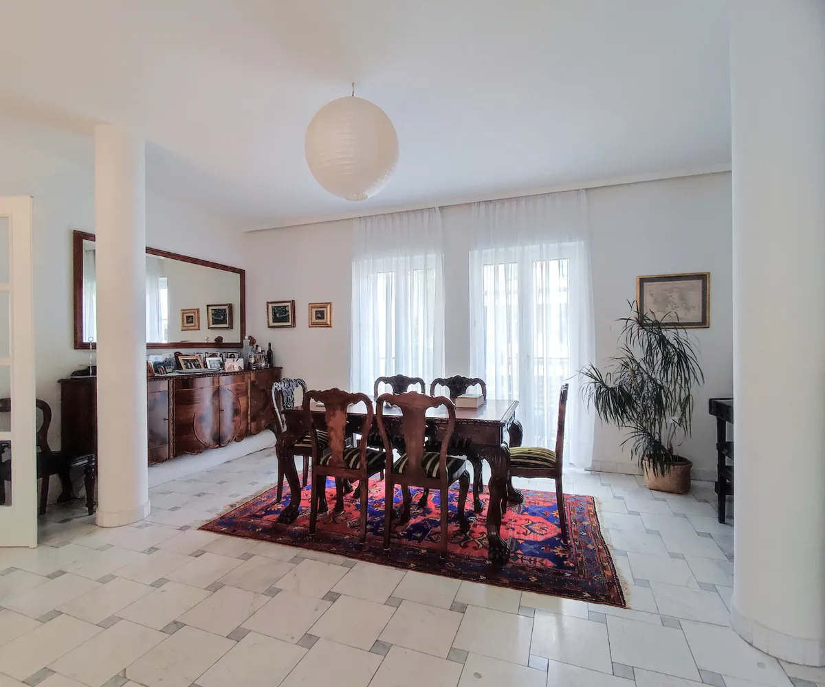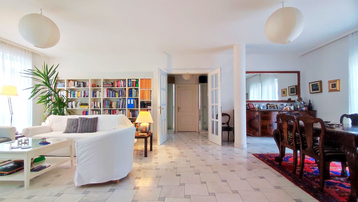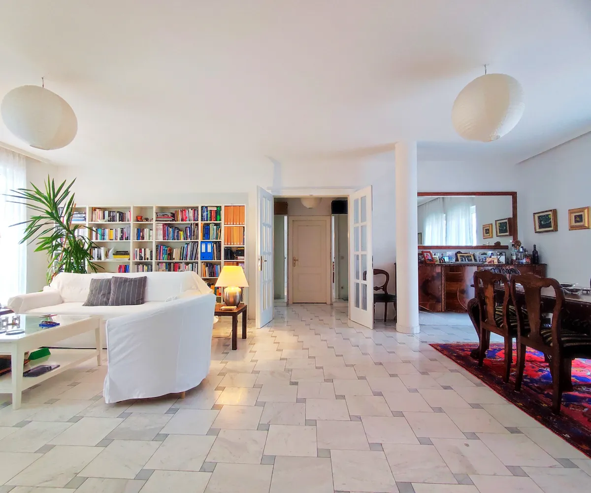 Die Wohnung überzeugt durch ihre Großzügigkeit und Offenheit – lichtdurchflutete Räume mit klassisch eleganten Flügeltüren und hellen Marmorböden schaffen ein beeindruckendes Raumgefühl und unterstreichen die ruhige, klare Atmosphäre.