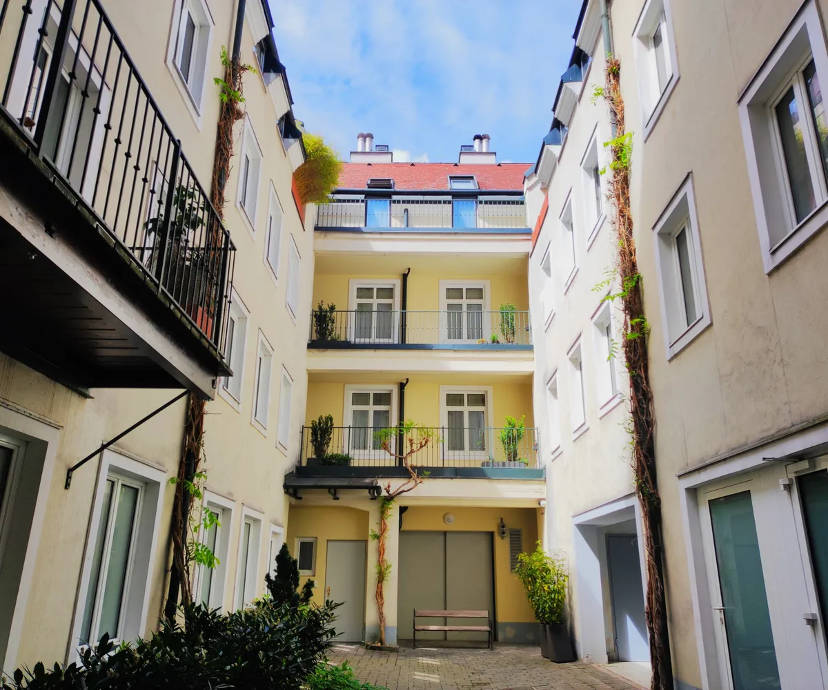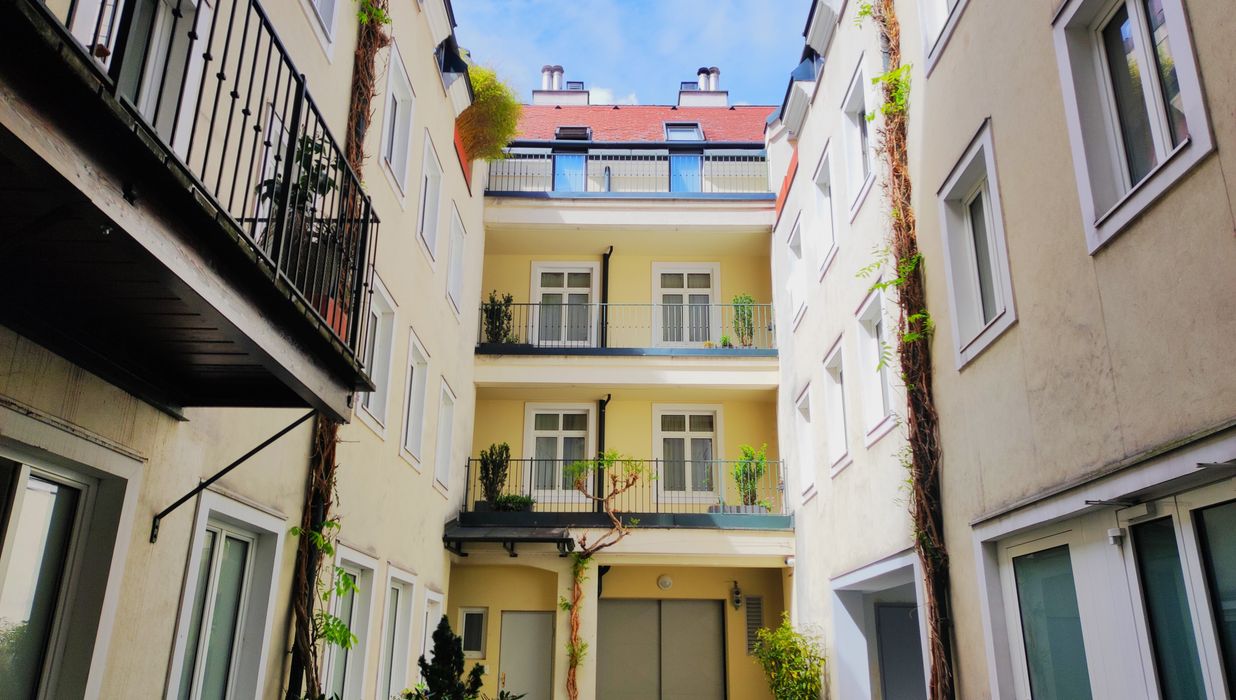In einem entzückenden Haus gelegen, mit einem Ruhe spendenden, hofseitigen Balkon, fasziniert diese etwas andere Immobilie.