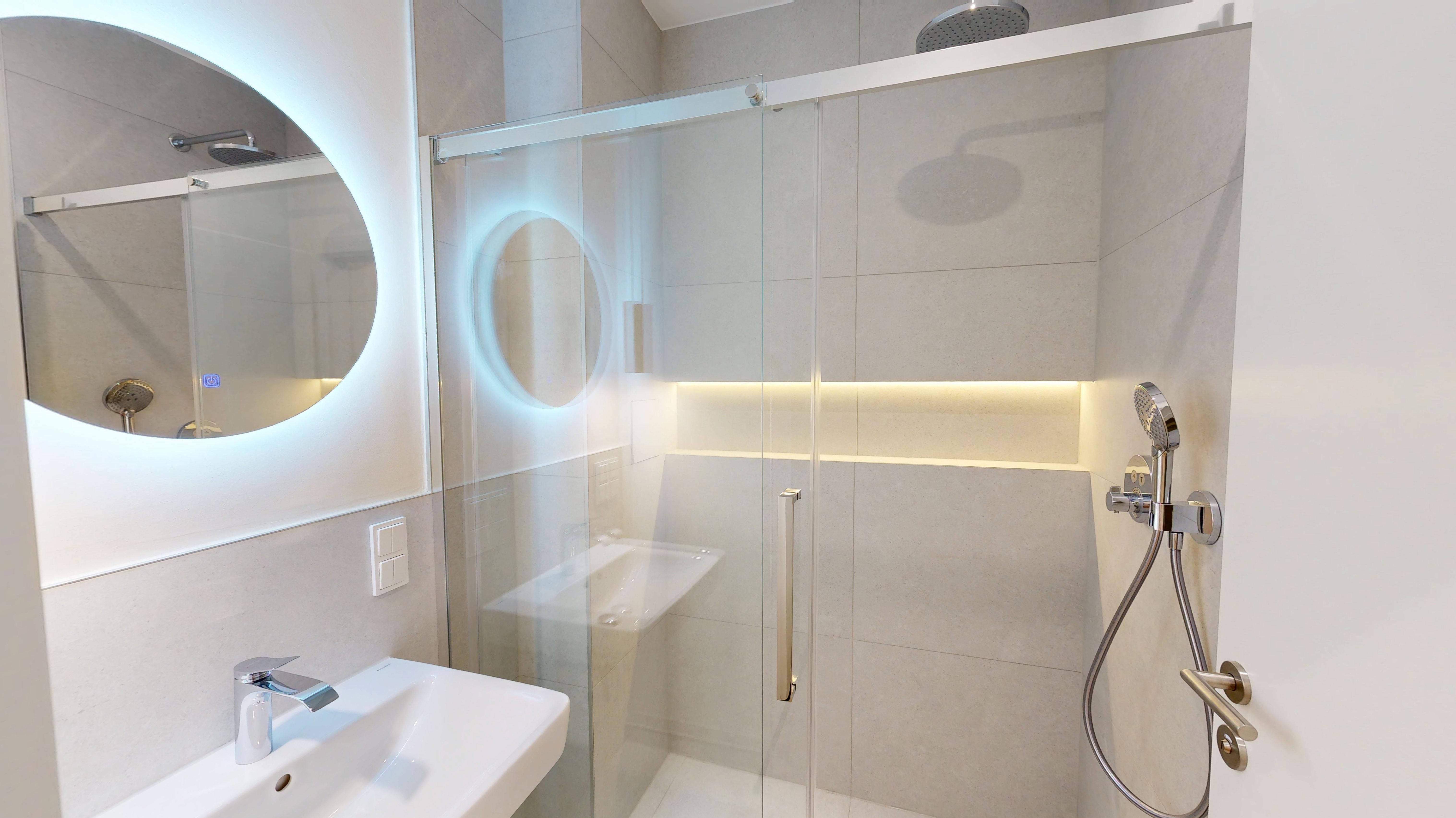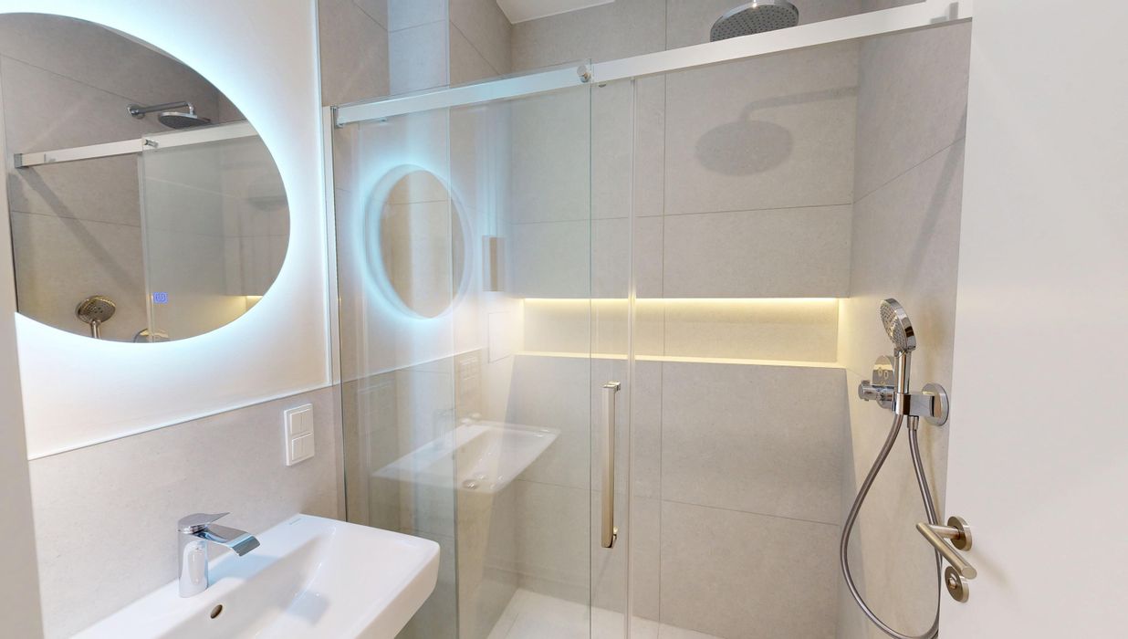 Edle Materialien wie Haro-Dielenparkett, Armaturen von hansgrohe, Marazzi-Fliesen und Berker-Steckdosen unterstreichen den Qualitätsanspruch. Eine Wohnungseingangs-Sicherheitstür der Widerstandsklasse 3, moderne Elektrik (mit E-Befund) und 2 USB-C-Steckdosen im Schlafzimmer sorgen für zeitgemäßen Komfort.