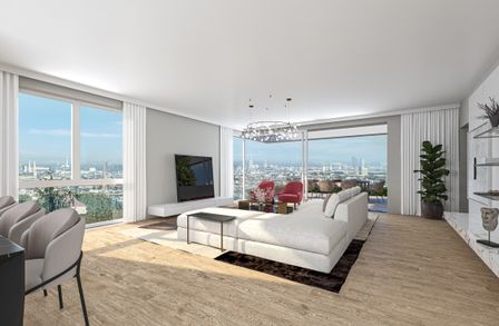 Klare Linien, großzügige Grundrisse und Wohnflächen zwischen ca. 130 und 175 m² schaffen Raum für individuelle Entfaltung. Große Fensterfronten holen Licht und Ausblick ins Innere – vom Sonnenaufgang über der Stadt bis zum abendlichen Lichtermeer.