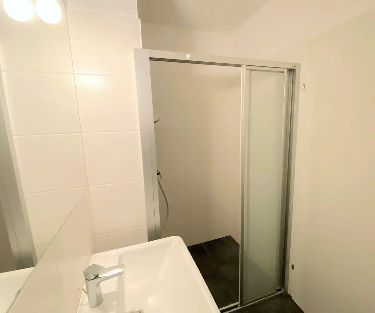 Die Wohnung selbst liegt im 1. Obergeschoss und verfügt über einen Wohnraum, ein Badezimmer mit Dusche und Toilette, sowie einen Vorraum mit Kochnische. Die Wohnung ist möbliert.