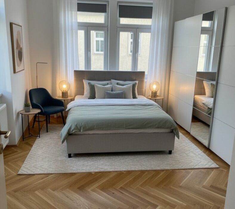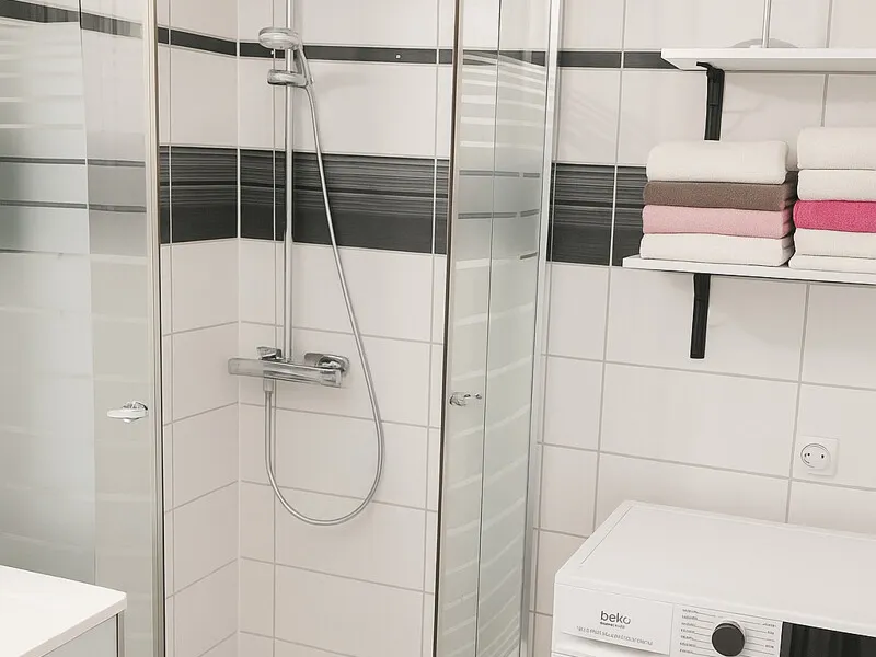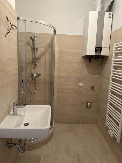 Die Wohnung besticht durch ihre hochwertige Ausstattung, die für ein angenehmes und modernes Wohngefühl sorgt. Die Fliesen im Badezimmer verleihen der Wohnung ein modernes und freundliches Ambiente , während in den Wohn- und Schlafbereichen Fischgrätparketten verlegt wurden. Das Badezimmer besteht aus einer Dusche, einem WC, einer Brennwerttherme, Waschbecken , sowie einem Waschmaschinenanschluss . Die neue Gasetagenheizung sorgt für wohlige Wärme an kalten Tagen und kann individuell reguliert werden. Auch an heißen Sommertagen bietet die Wohnung angenehme Temperaturen dank der neuen mehrfach verglasten Kunststofffenster , die für eine gute Isolierung sorgt.