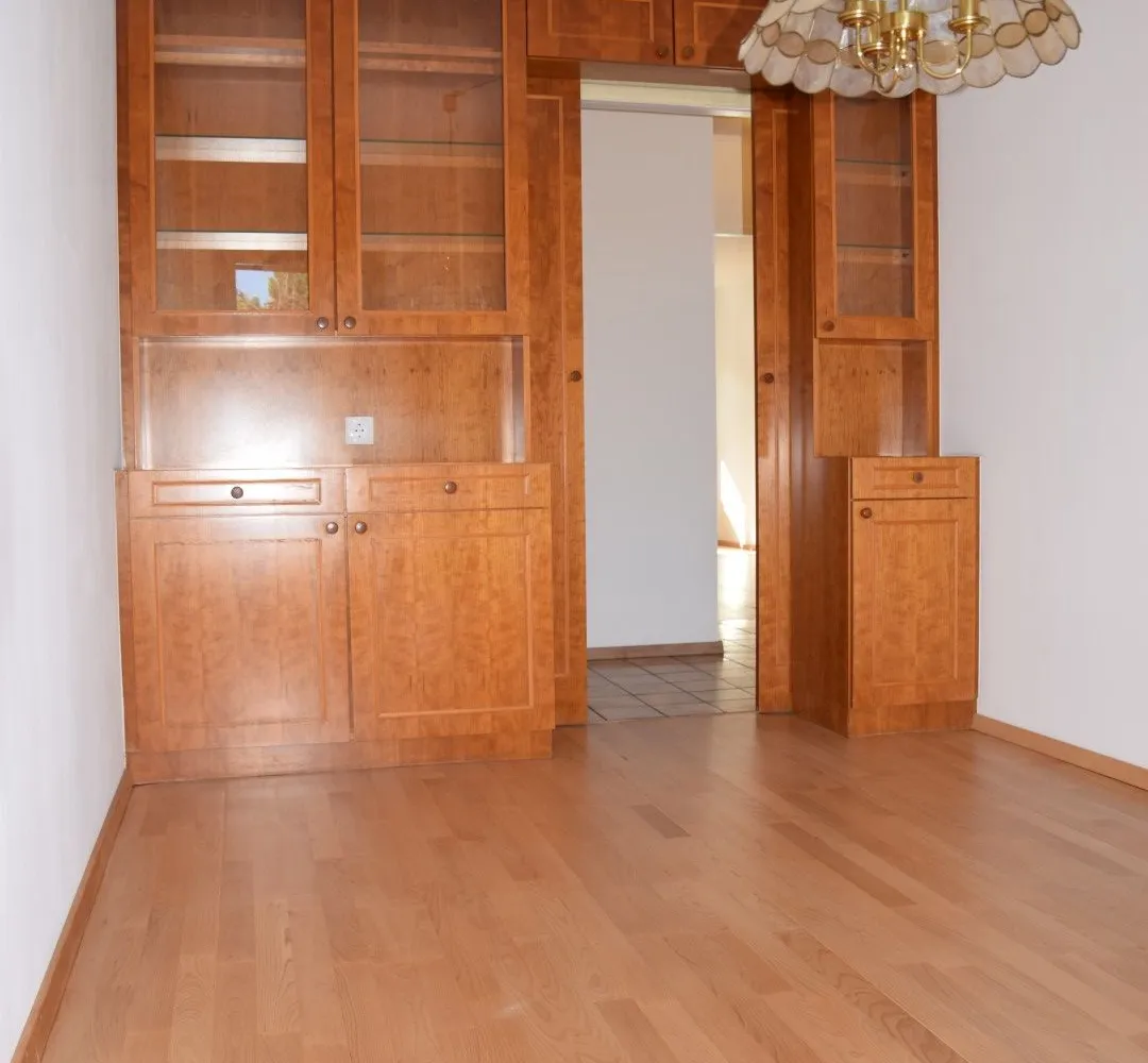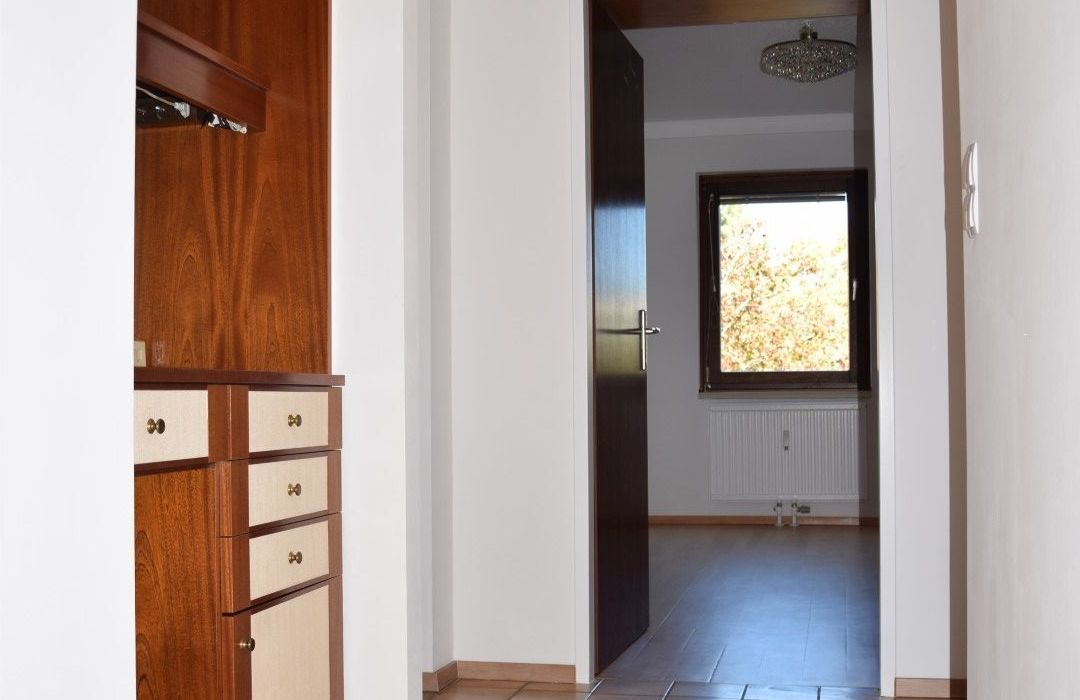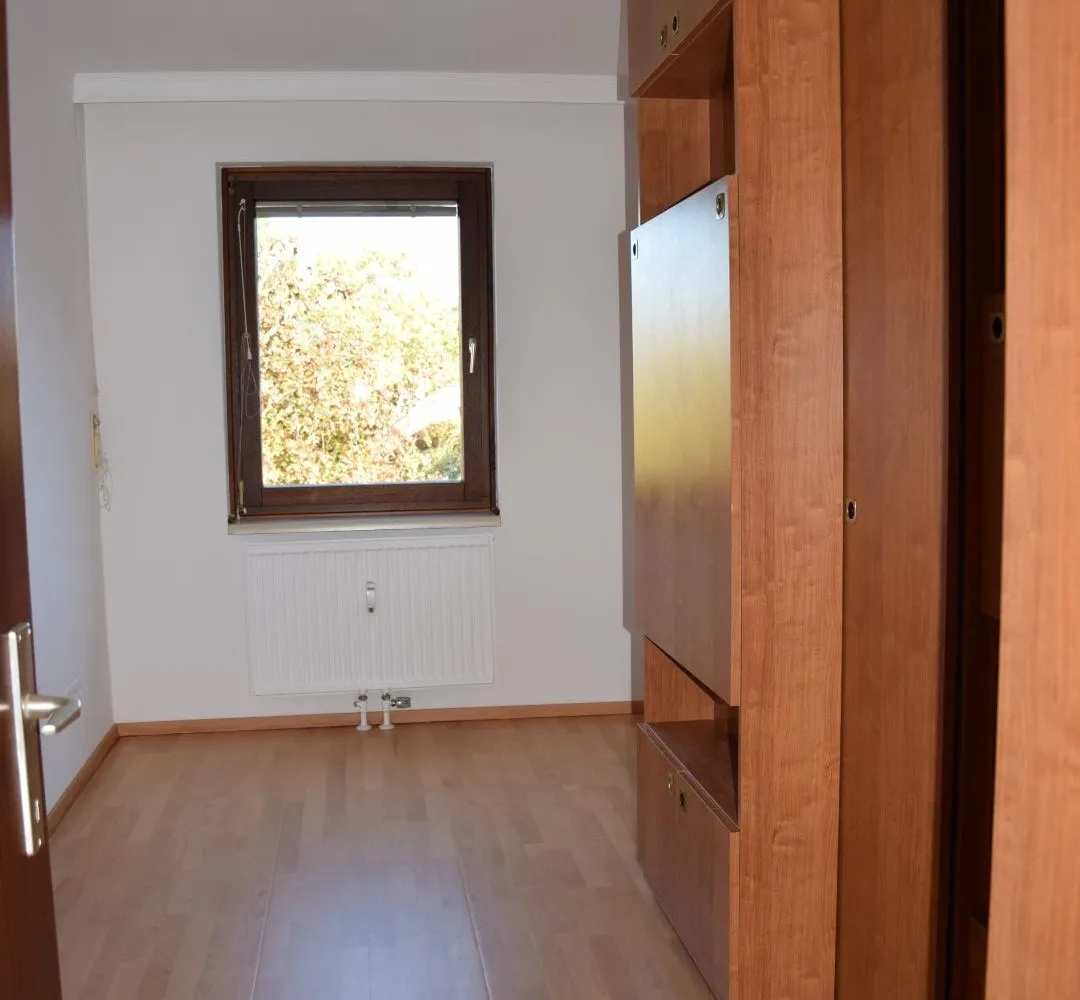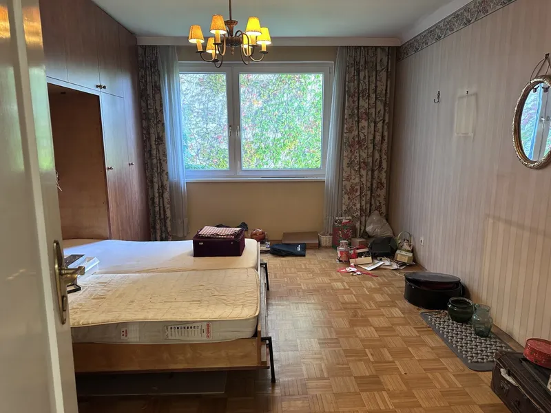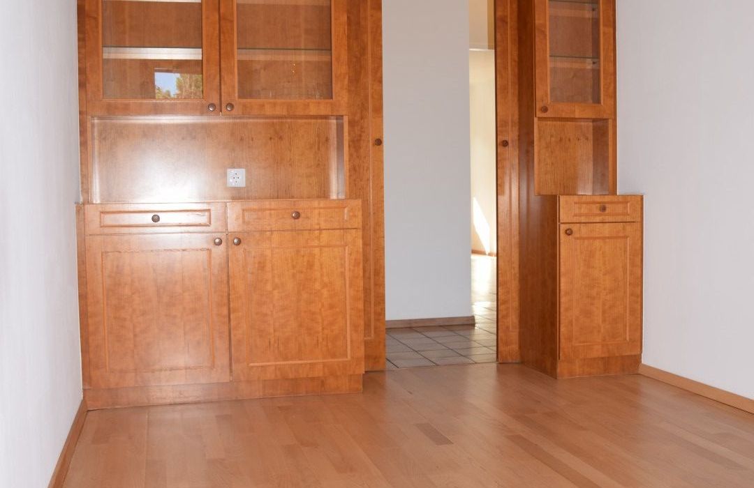 Die Einrichtung ist sehr gepflegt, die Einbaumöbel aus Vollholz und in einem der Zimmer, das auch als Büro Verwendung finden kann, ist ein Doppelschrankbett untergebracht. Die großflächige Fensterfront im Wohnraum wird zusätzlich zu den Innenrollos durch eine elektrischen Aussenrollo beschattet. Von der Küche aus sowie von den drei Zimmern aus hat man einen wunderbaren Grünblick und absolute Ruhelage!