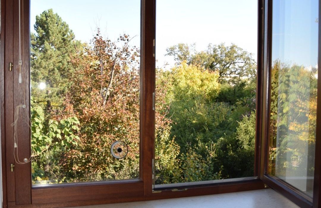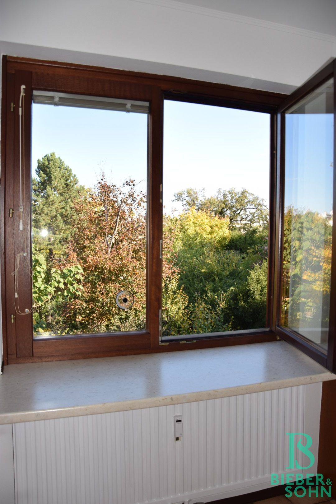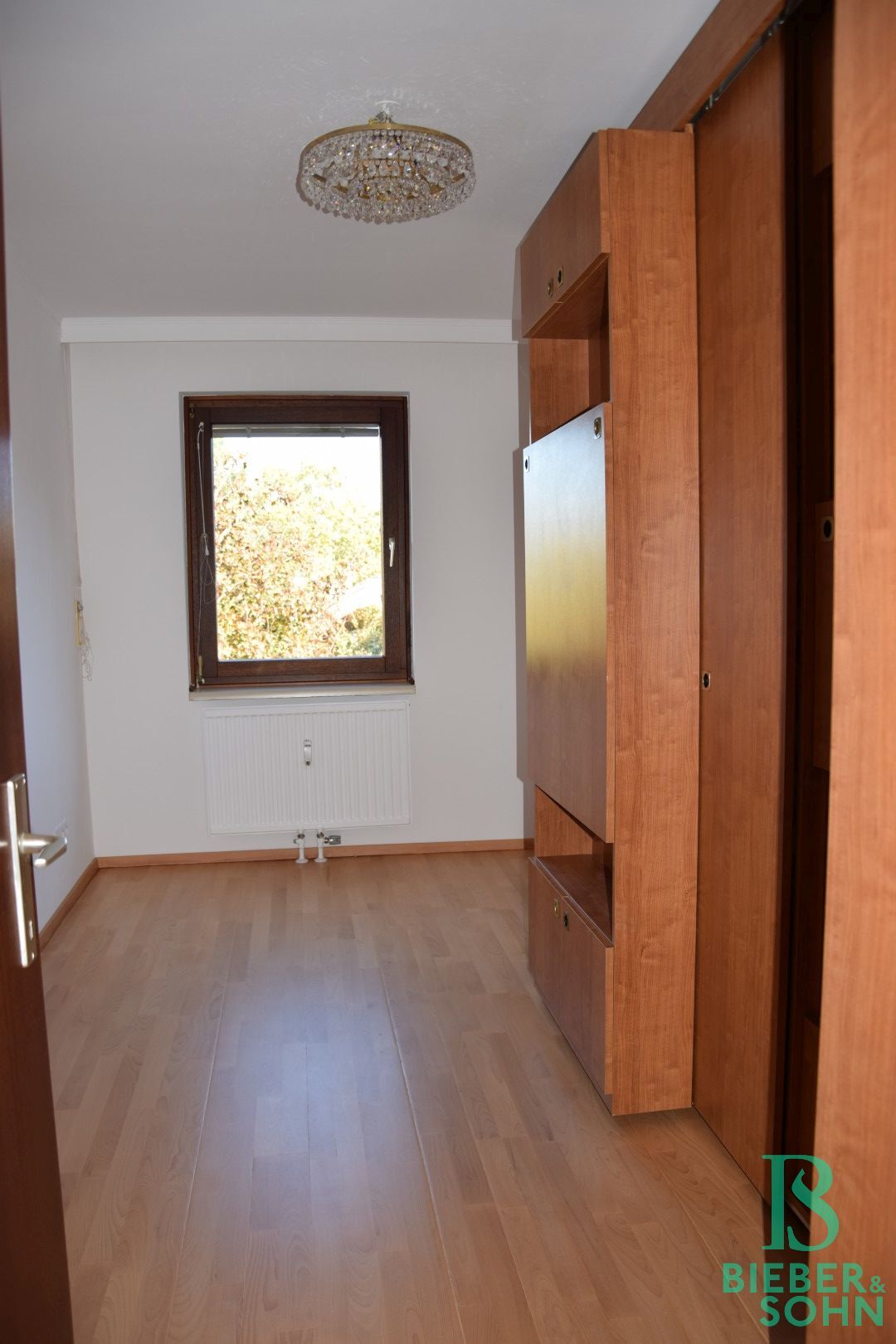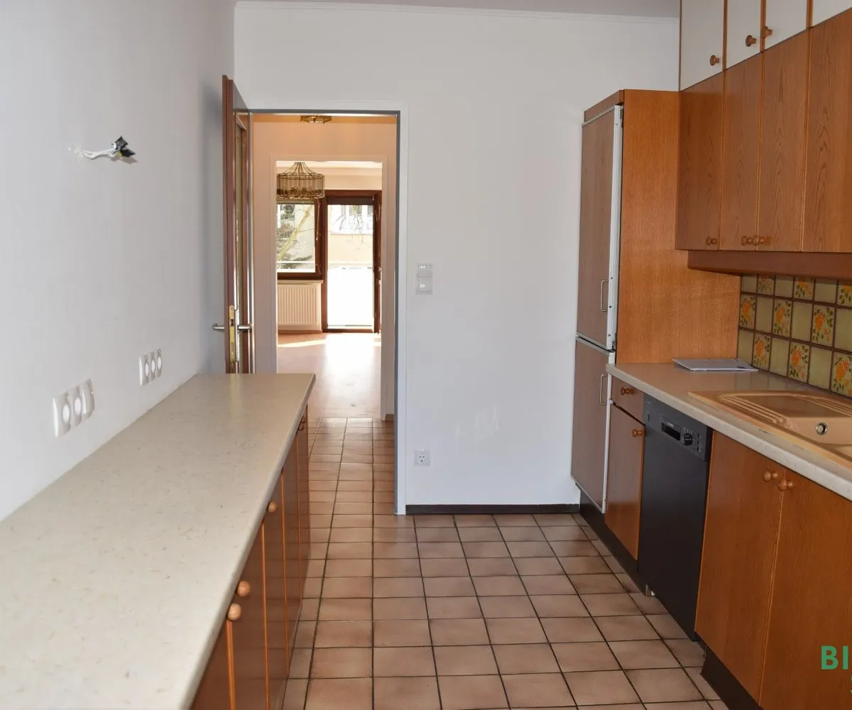 Die Einrichtung ist sehr gepflegt, die Einbaumöbel aus Vollholz und in einem der Zimmer, das auch als Büro Verwendung finden kann, ist ein Doppelschrankbett untergebracht. Die großflächige Fensterfront im Wohnraum wird zusätzlich zu den Innenrollos durch eine elektrischen Aussenrollo beschattet. Von der Küche aus sowie von den drei Zimmern aus hat man einen wunderbaren Grünblick und absolute Ruhelage!