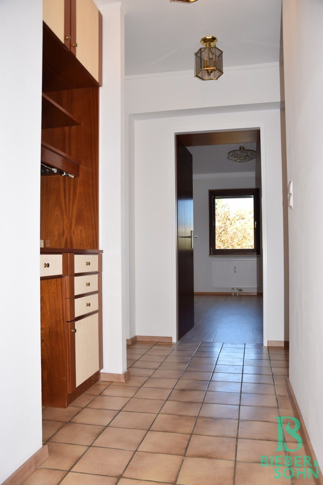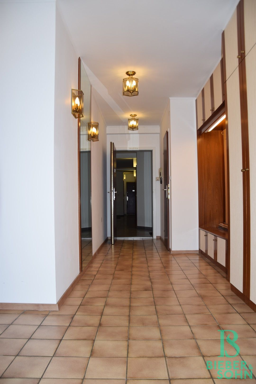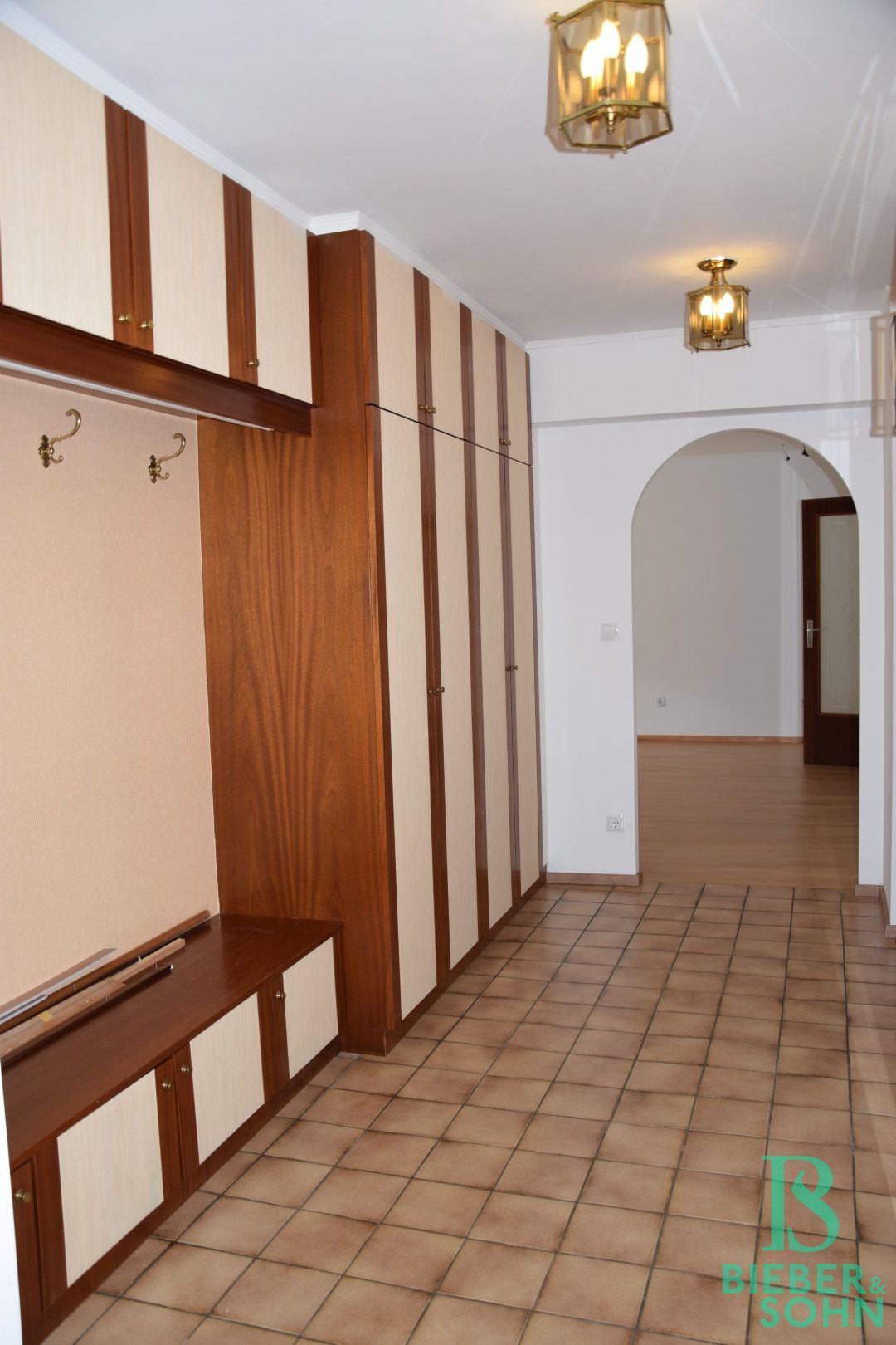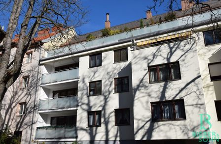 Im 2. Liftstock gelegen, betritt man die Wohnung über einen großzügigen Vorraum mit eingebauter Garderobe, der in den sonnigen Wohnraum, mit Ausgang auf die Loggia, weiter führt. Sowohl vom Vorraum aus als auch vom Wohnraum aus gelangt man in den Flur, von dem aus die komplett ausgestattete Küche, drei Zimmer, das Duschbad, das Bad mit Wanne, ein separates WC und ein Abstellraum zu erreichen sind. Ein weiteres separates WC ist vom Vorraum aus zu betreten. Ein entzückender Sekretär ist im kleinen Dielen-Durchgang, als ehemalige Telefonablage, platziert.