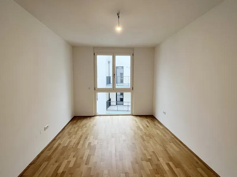 Eichenparkettböden, Holz-Alu-Fenster und Außenjalousien schaffen ein stilvolles Ambiente mit natürlicher Wärme. Dank Smart-Home-Vorbereitung, Fußbodenheizung und Raumkühlung über Bauteilaktivierung genießen Bewohnerinnen und Bewohner ein ausgewogenes Wohnklima zu jeder Jahreszeit.