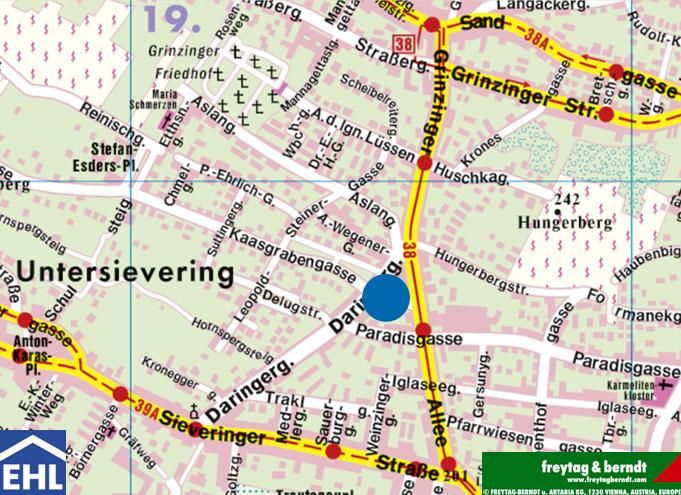 Beste Infrastruktur und Verkehrsanbindung sind durch die Straßenbahn 38 und Schnellbahnstation "Oberdöbling" gegeben.