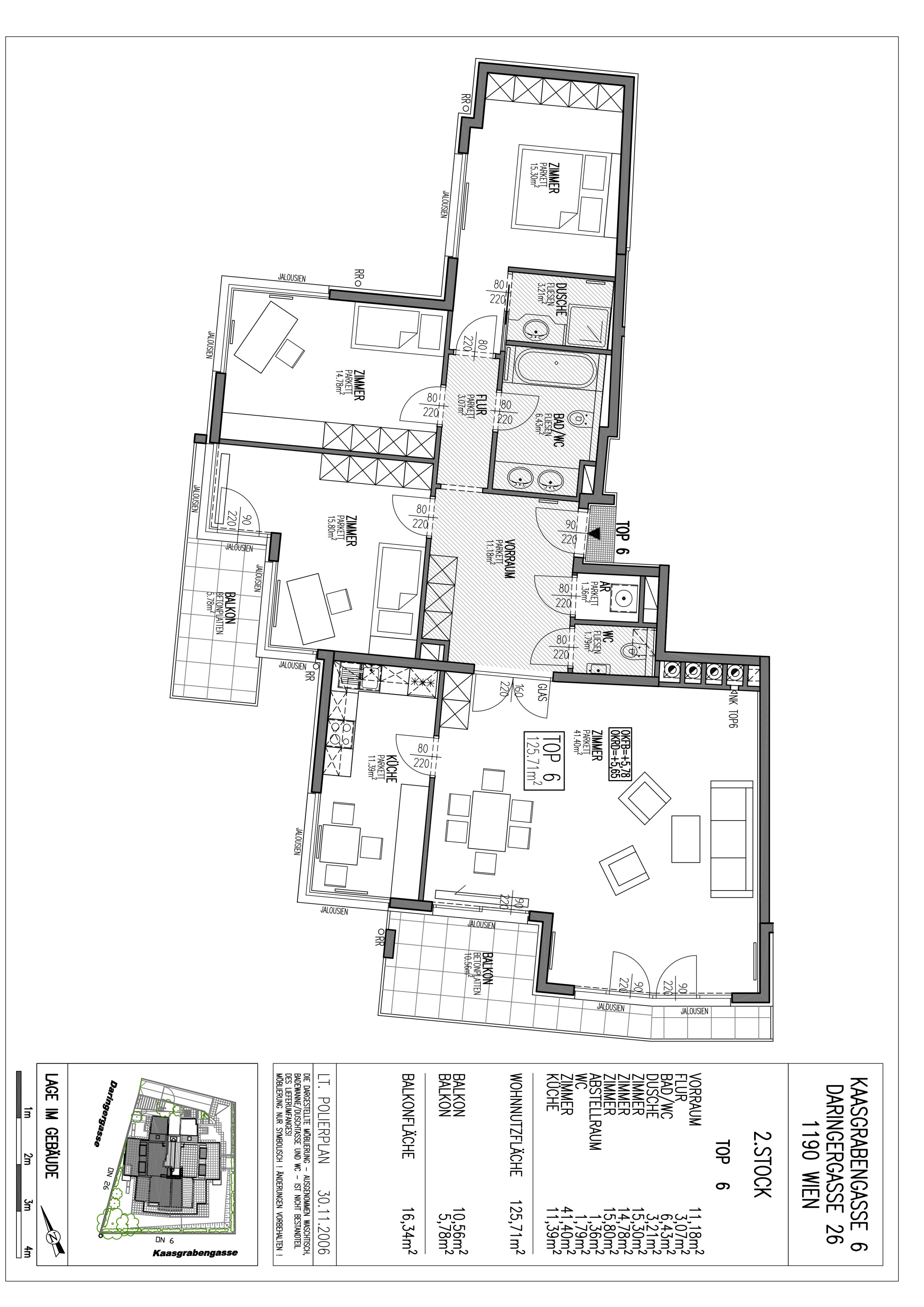 Diese schön ausgestattete 4 Zimmerwohnung verfügt über ein großzügiges Wohnzimmer mit separater Küche, drei getrennt begehbare Schlafzimmer, zwei Badezimmer, eine separate Toilette, einen Abstellraum und einen geräumigen Vorraum. Die zwei Balkone sind entweder vom Wohnzimmer oder von einem der Schlafzimmer aus begehbar und laden zum gemütlichen Verweilen ein.