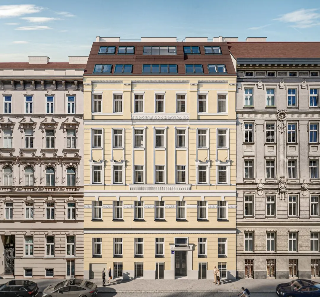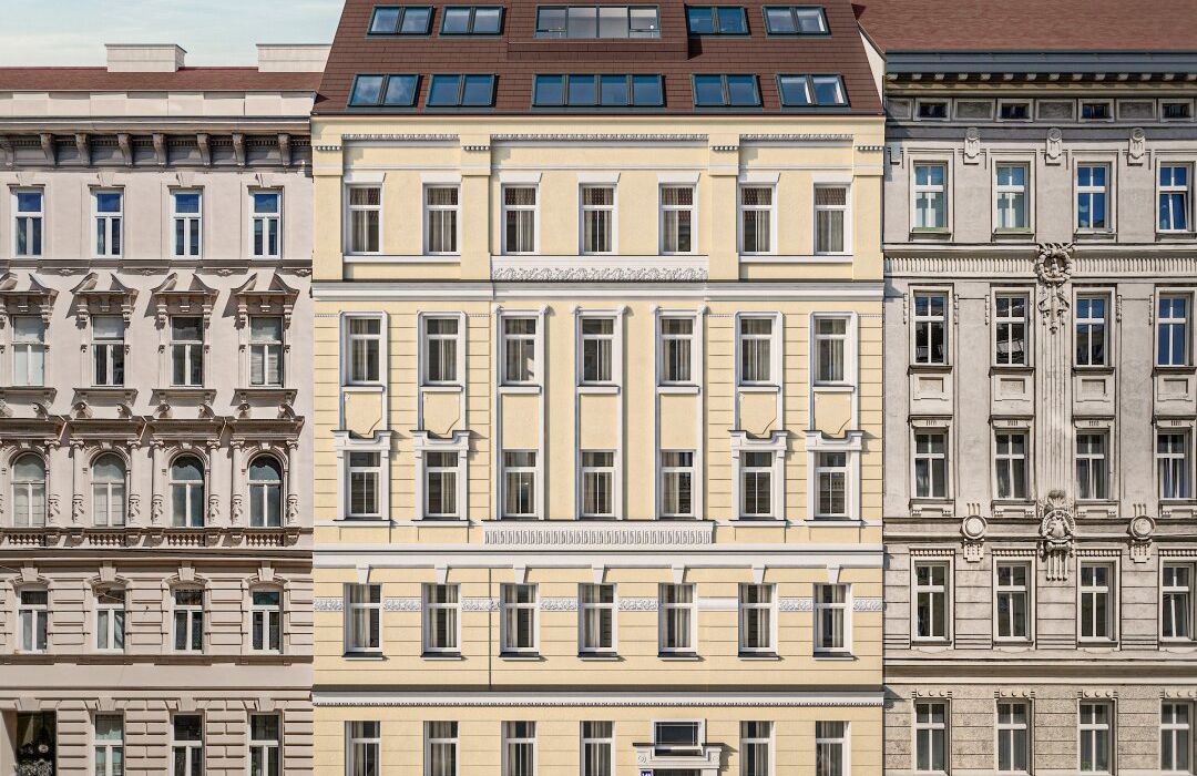 Die 5-stöckige Jahrhundertwendeliegenschaft in unmittelbarer Nähe zum Servitenviertel wurde mit Bedacht auf die historische Substanz liebevoll saniert.
