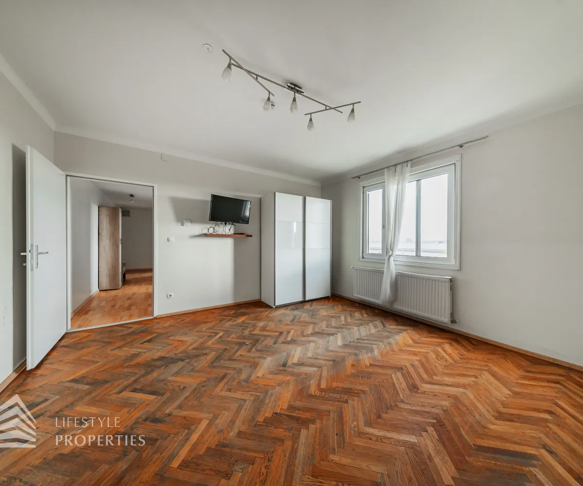 Sie verfügt über ca. 52 m² und befindet sich im 3. Stock eines im Jahr 1936 erbauten Altbaus. Die Wohnung gliedert sich in einen Vorraum, einen Wohnraum, ein Schlafzimmer, eine Küche, ein Badezimmer und ein separates WC. Die Wohnräume sind mit einem Parkettboden ausgestattet und die Nassräume sind verfliest. Beheizt wird mittels Gas-Etagenheizung.